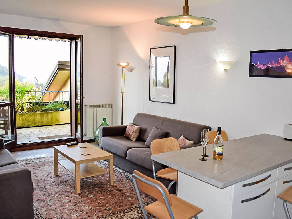 3-Zimmer-Wohnung 70 m2 im 1. Stock. Zweckmässig eingerichtet: Wohn-/Esszimmer mit 1 Doppeldiwanbett und Sat-TV. Ausgang zur Terrasse. 2 Zimmer, jedes Zimmer mit 1 Bett. Offene Küche (4 Kochplatten, Backofen, Geschirrspüler, Tiefkühler, elektrische Kaffeemaschine). Dusche/Bidet/WC. G-Heizung (extra). Heizung nur verfügbar von 15.10. bis 15.04. Terrasse 6 m2. Terrassenmöbel. Fernsicht auf den See. Zur Verfügung: Waschmaschine. Internet (Wireless LAN, gratis). Garage. CIR: 012020-CNI-00008