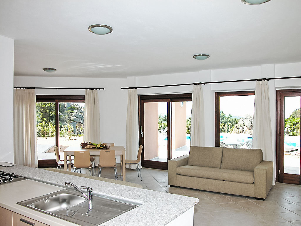 5-Zimmer-Haus 140 m2. Einfach und modern eingerichtet: Wohn-/Schlafzimmer mit 1 Doppeldiwanbett und TV. 1 Doppelzimmer mit Dusche/Bidet/WC. 2 Doppelzimmer. 1 Zimmer mit 2 Betten. Kochnische (4 Kochplatten, Geschirrspüler, Mikrowelle, Tiefkühler). Dusche/Bidet/WC. Terrassenmöbel, Gartengrill. Zur Verfügung: Waschmaschine. Internet (Wireless LAN, gratis). 1 Haustier/Hund erlaubt.