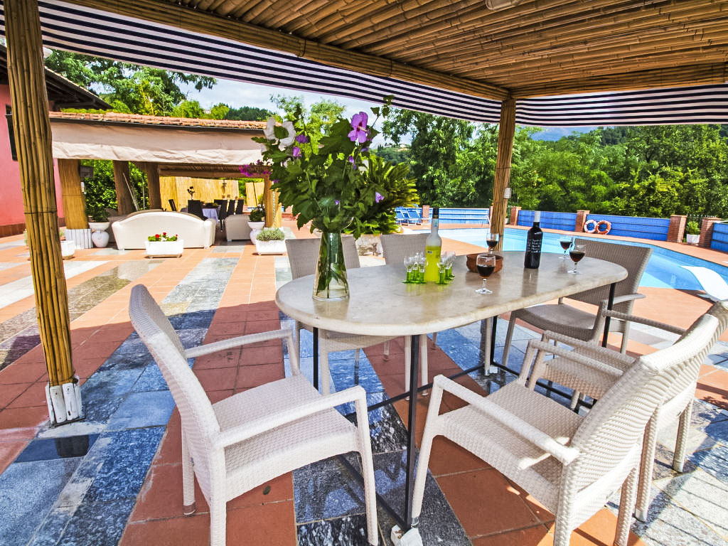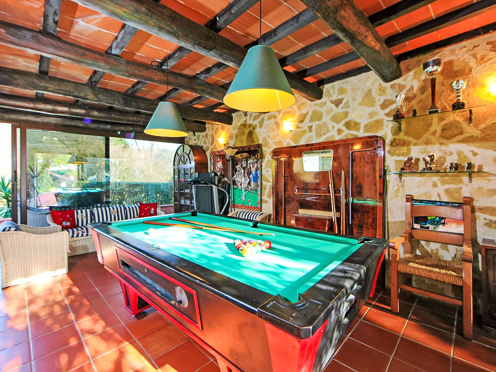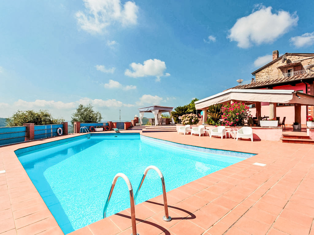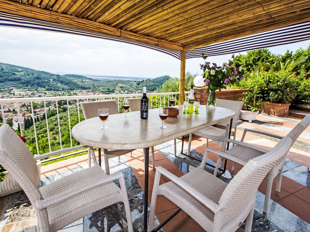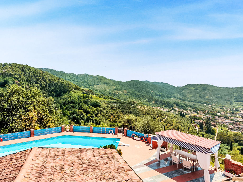 Bargecchia 9 km von Massarosa: Schöne, alleinstehende, komfortable Villa "La Chiazza", umgeben von Bäumen. Oberhalb von Massarosa, im Weiler Bargecchia, alleinstehende, ruhige, sonnige Lage am Hang, in einem Wohnquartier, 50 m vom Waldrand, 10 km vom Meer, im Grünen. Zur Alleinbenutzung: Grundstück 14'000 m2 (eingezäunt), grosser Garten (eingezäunt), Liegewiese, Hof, Schwimmbad (90 m2, 160 - 220 cm tief, 15.04.-31.10.). Aussendusche, Sitzplatz, Pergola, Terrasse (30 m2), Gartenmöbel, Grill, Grillhaus, Kinderspielplatz. Im Hause: Tischtennis, Billard, Tischfussball, Einstellraum für Fahrräder, Sonnenterrasse, Zentralheizung, Waschmaschine, Heizung nur verfügbar von 01.11. bis 15.04.. Wäschewechsel (zusätzlich extra). Handtuchwechsel (zusätzlich extra). Haushaltshilfe möglich (extra). Koch möglich (extra). 400 m lange schmale Zufahrt. Parkplatz (für 2 Autos, überdacht). Lebensmittelgeschäft 400 m, Supermarkt 4 km, Restaurant, Café 400 m, Sandstrand "Viareggio" 10 km. Golfplatz (18 Loch) 18 km, Tennis 200 m, Wanderwege ab Haus 50 m. Nahe gelegene Sehenswürdigkeiten: Forte dei Marmi 15 km, Pisa 30 km, Lucca 30 km, Pietrasanta 15 km, Viareggio 12 km, Firenze 110 km. Bitte beachten: Fahrzeug empfohlen. Geeignet für Familien, geeignet für Senioren Babyausstattung auf Anfrage. Jugendgruppen nur auf Anfrage.