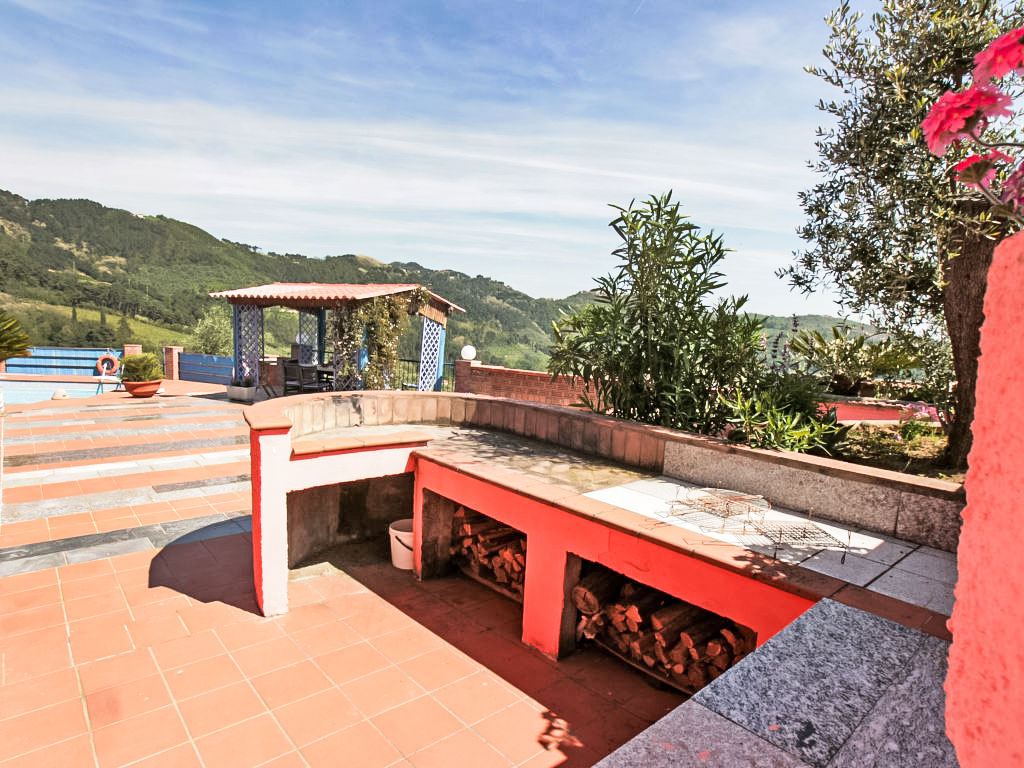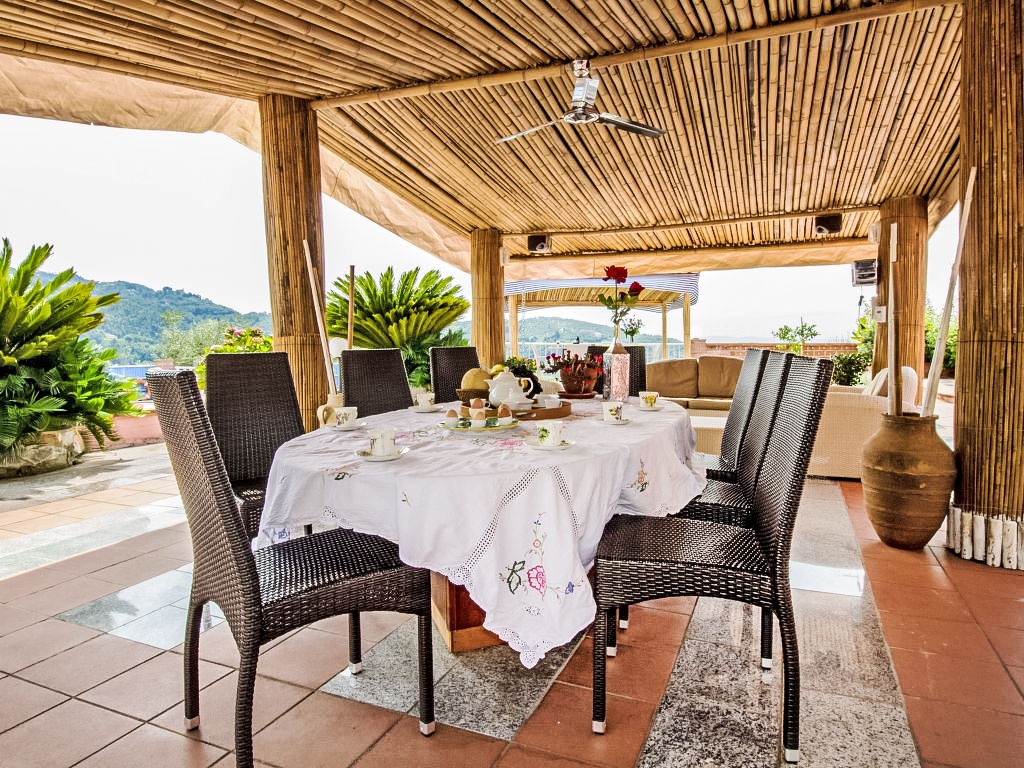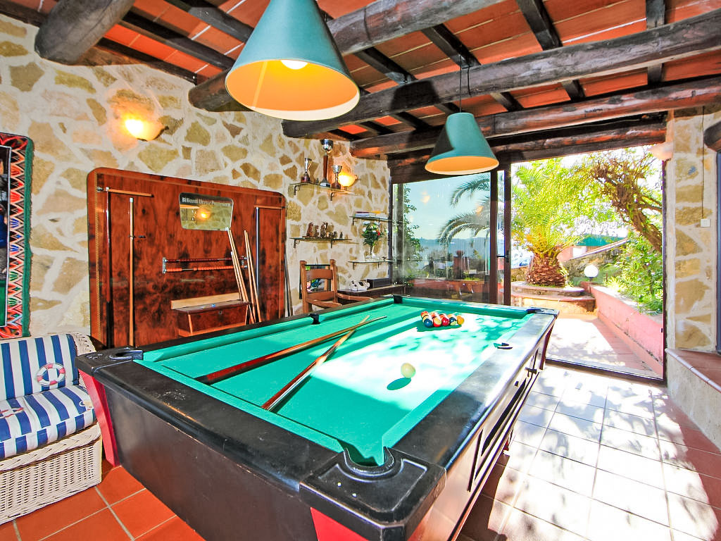 "La Chiazza", 7-Zimmer-Villa 250 m2 auf 2 Stockwerken. Geräumig und hell, komfortabel und gemütlich eingerichtet: grosses Wohn-/Esszimmer mit offenem Kamin, Bar und Digital-TV. Ausgang zur Terrasse. 1 grosses Doppelzimmer mit offenem Kamin. Spielzimmer. Ausgang zum Schwimmbad. Grosse Küche 25 m2 (5 Kochplatten, Backofen, Geschirrspüler, Toaster, Wasserkocher, Mikrowelle, Tiefkühler, elektrische Kaffeemaschine) mit Esstisch. Dusche/Bidet/WC. Klimaanlage. Obergeschoss: 1 Doppelzimmer. Grosses Durchgangszimmer mit 2 Betten. 1 Doppelzimmer 14 m2. 1 Doppelzimmer mit Dusche/Bidet/WC. Ausgang zur Veranda. Dusche/Bidet/WC. Klimaanlage. Grosse Terrasse 30 m2, grosser Gartensitzplatz, grosser Garten. Terrassenmöbel, Gartengrill. Herrliche Panoramasicht auf das Meer, die Berge und das Tal. Zur Verfügung: Waschmaschine, Safe, Bügeleisen, Fliegengitter, Babybett bis 2 Jahre, Haartrockner. Internet (Wireless LAN, gratis). 2 Haustiere/Hunde erlaubt.