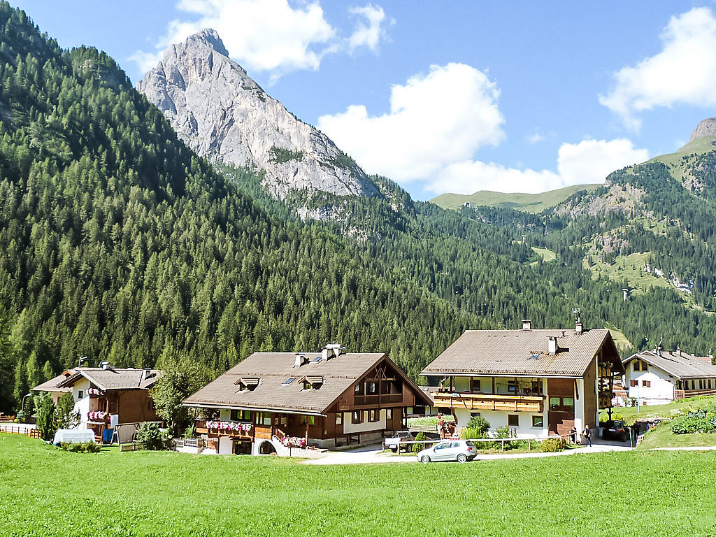 Penia 3 km von Canazei: Kinderfreundliches, komfortables Chalet "Cesa Galaldriel", 1'555 m.ü.M., auf 2 Stockwerken. 3 Wohnungen im Ferienhaus. Im Weiler Penia, 1.5 km vom Zentrum von Alba, 3.5 km vom Zentrum von Canazei, ruhige Lage, 1 km vom Skigebiet, Richtung Südwesten. Parkplatz (beschränkte Anzahl) auf dem Grundstück, öffentliche Parkplätze 500 m auf der Strasse. Einkaufsgeschäft 300 m, Lebensmittelgeschäft, Restaurant, Bushaltestelle 100 m. Luftseilbahn 1 km. Bitte beachten: Fahrzeug empfohlen. Bei guter Schneelage Zufahrt mit den Skiern bis zum Haus.