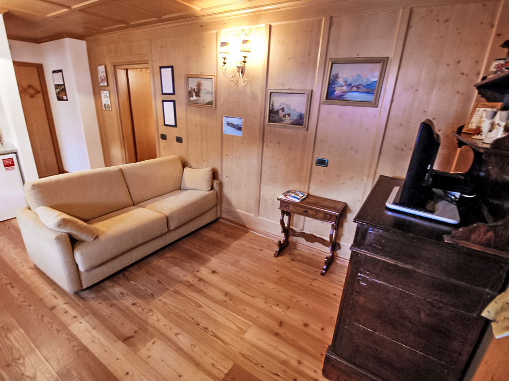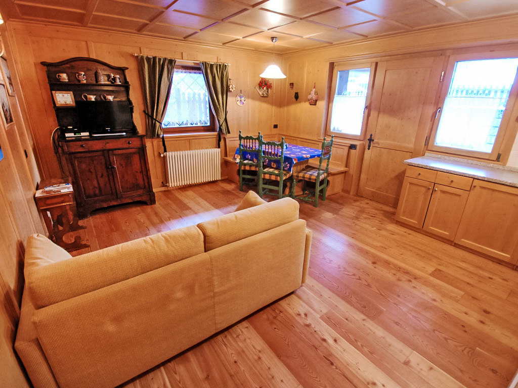 2-Zimmer-Wohnung 50 m2, im Erdgeschoss. Schön und mit viel Holz eingerichtet: Wohn-/Schlafzimmer mit 1 Doppeldiwanbett (140 cm, Länge 200 cm), Esstisch und Sat-TV (Flachbildschirm). 1 Doppelzimmer mit 1 franz. Bett. Grosse Kochnische (4 Kochplatten, Backofen, Geschirrspüler). Dusche/Bidet/WC. Heizung. Sehr schöne Sicht auf die Berge. Zur Verfügung: Waschmaschine. Internet (Wireless LAN, gratis). Parkplatz (1 Auto). Maximal 1 Haustier/Hund erlaubt.