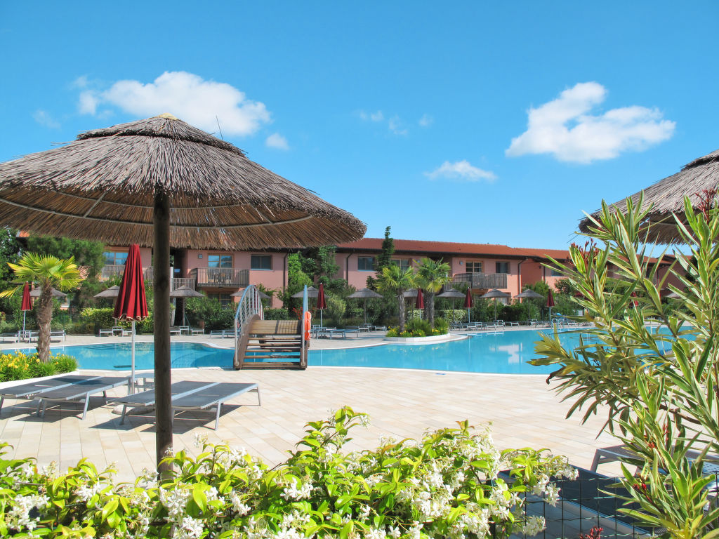 Die sehr gepflegte Ferienanlage GREEN VILLAGE RESORT liegt auf einem ca. 4 ha großen, hübsch angelegten Grundstück im Ortsteil Lignano-Riviera, neben dem Golfplatz (INTER CHALET-Gäste erhalten 20% Ermäßigung auf die Green-Fee) und in der Nähe des Jachthafens Marina Punta Verde. Zum Strand 1,8 km (Beach-Shuttle vom 15.05.-15.09. auf Anfrage). Zur Ortsmitte Riviera 1,5 km. Die Anlage setzt sich zusammen aus einem Hotel (17 Zimmer), mehreren Bungalows mit Suiten und Wohnungen (teils auch LIG 201), die sich um den Pool gruppieren sowie unseren Ferienhäusern und Wohnungen (LIG 201-205), die sich seitlich des Hotels befinden. In der Anlage: Rezeption, Bar, Restaurant (geöffnet 14.05.-25.09., Frühstück und Halbpension auf Wunsch, Buchung und Bezahlung jeweils am Ort), Wäscherei mit Münzwaschmaschinen und -trockner, im öffentlichen Bereich der Anlage Internetzugang (WLAN, inklusive). Sport- und Freizeitangebot: Sehr schön angelegte Poollandschaft (ca. 690 m², mit geothermischem Wasser, ca. 14.05-25.09.) mit Sonnenliegen und Sonnenschirmen. Animation und Miniclub (ab 3 Jahre, jeweils ca. 04.06.-16.09.). Verleih von Nordic-Walking-Stöcken (kostenlos, solange Vorrat reicht) und Fahrrädern (€ 16/Woche, auch für Kinder oder mit Kindersitz). Trimm-Pfad und Kinderspielplatz im angrenzenden, ca. 1,2 ha großen Pinienwald. Kleines Wellness-Center mit Sauna, türkischem Dampfbad und Fitnessraum mit Geräten, beheiztes Sprudelbad (jeweils inklusive). Für LIG 201 jeweils 1 Parkplatz auf dem Grundstück oder innerhalb der Anlage, für LIG 202/203 jeweils 1 überdachter Parkplatz, LIG 204 mit Garage, LIG 205 mit Doppelgarage (Stellplätze hintereinander). Zusätzliche Stellplätze innerhalb der Anlage oder auf Parkplatz vor der Anlage. Die Wohnungen LIG 201 haben entweder 2 überdachte Terrassen mit Mobiliar und hübsch angelegtem Gartenanteil mit 2 Sonnenliegen oder 2 überdachte Balkone mit Mobiliar und 2 Sonnenliegen. Die Reihenhäuser LIG 202 haben ein hübsch angelegtes, komplett abgeschlossenes Gartengrundstück und eine Terrasse mit Mobiliar und 2 Sonnenliegen und Balkon. Die Zweifamilienhäuser LIG 203/204 haben einen hübschen, komplett abgeschlossenen Gartenanteil, Portico mit Mobiliar und 2 Sonnenliegen sowie 2 Balkone. Die Zweifamilienhäuser LIG 205 haben einen hübschen, komplett umzäunten Gartenanteil sowie eine Terrasse und zwei Balkone, davon einer mit Mobiliar (1 Tisch/6 Stühle). Jeweils gute Einrichtung. Sat-TV (deutsche Programme), Internetzugang (WLAN, inklusive). Safe. Klimaanlage mit Kühl-/Heizfunktion (nicht in allen Räumen). Strandservice: Von ca. 15.05.-15.09. sind jeweils 2 Sonnenliegen und 1 Sonnenschirm pro Wohnung/Haus im Mietpreis enthalten. Weinprobe: Von ca. April bis Oktober pro Haus 1 Weinprobe in Bibione im Mietpreis enthalten. Hinweis: Innerhalb der Zeit von 26.09.2021-14.05.2022 stehen nur die Ferienhäuser und Ferienwohnungen zur Verfügung. Alle anderen Einrichtungen bleiben geschlossen.
