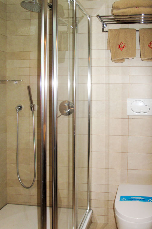 3-Zimmer-Wohnung, Erdgeschoss oder 1. Etage, ca. 60 m². Wohn-/Schlafraum mit Doppelbettcouch, Essplatz, Küchenzeile (4 Flammen, Mikrowelle, Kühl-/Gefrierkombination). 2 Zweibettzimmer. 2x Dusche/WC.