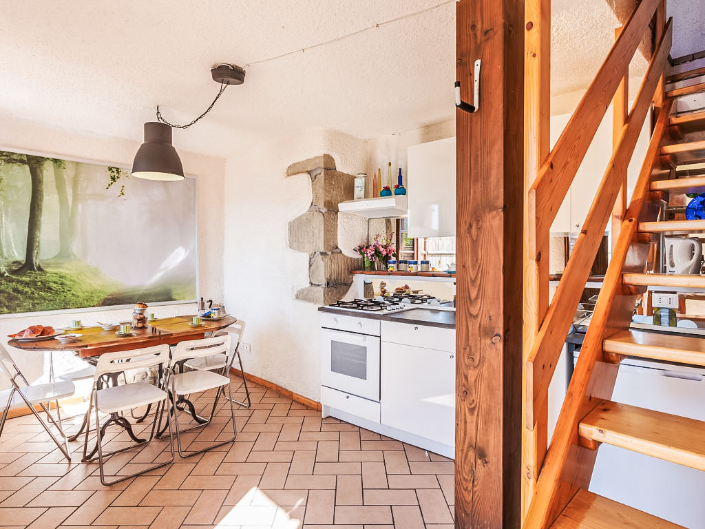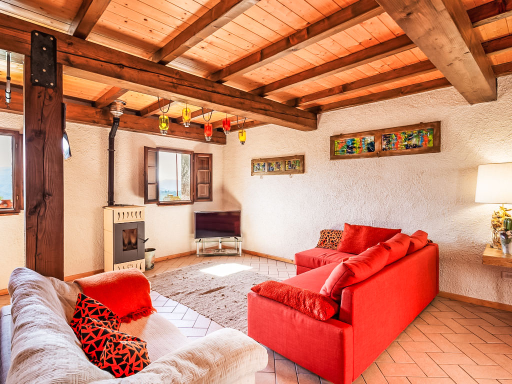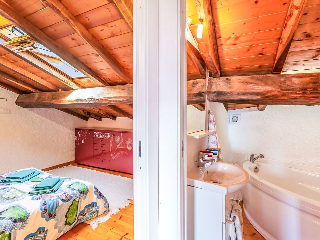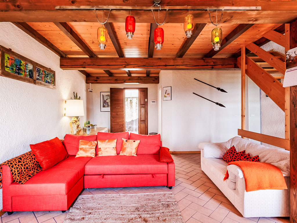 "Kiwi", 3-Zimmer-Reihenhaus 110 m2 auf 3 Stockwerken, im erhöhten Erdgeschoss. Sehr zweckmässig und geschmackvoll eingerichtet: Wohnzimmer mit Panoramafenster mit 1 Doppeldiwanbett, TV, Flachbildschirm und Heizofen. Dusche/Bidet/WC. Unteres Geschoss: Küche (Mikrowelle, Tiefkühler) mit Esstisch. Ausgang zur Terrasse, zum Schwimmbad. Obergeschoss: 1 abgeschrägtes Doppelzimmer, Deckenhöhe 200 - 110 cm. 1 Doppelzimmer. Bad/Bidet/WC. E-Heizung, Holzheizung. Parkettböden. Gartengrill. Schöne Panoramasicht auf die Berge. Zur Verfügung: Waschmaschine, Haartrockner. Internet (Wireless LAN). 1 Haustier/Hund erlaubt. Das Badezimmer mit Sprudelbad im Obergeschoss hat eine schräge Decke (Höhe 200cm-120cm). 046002LTN0057