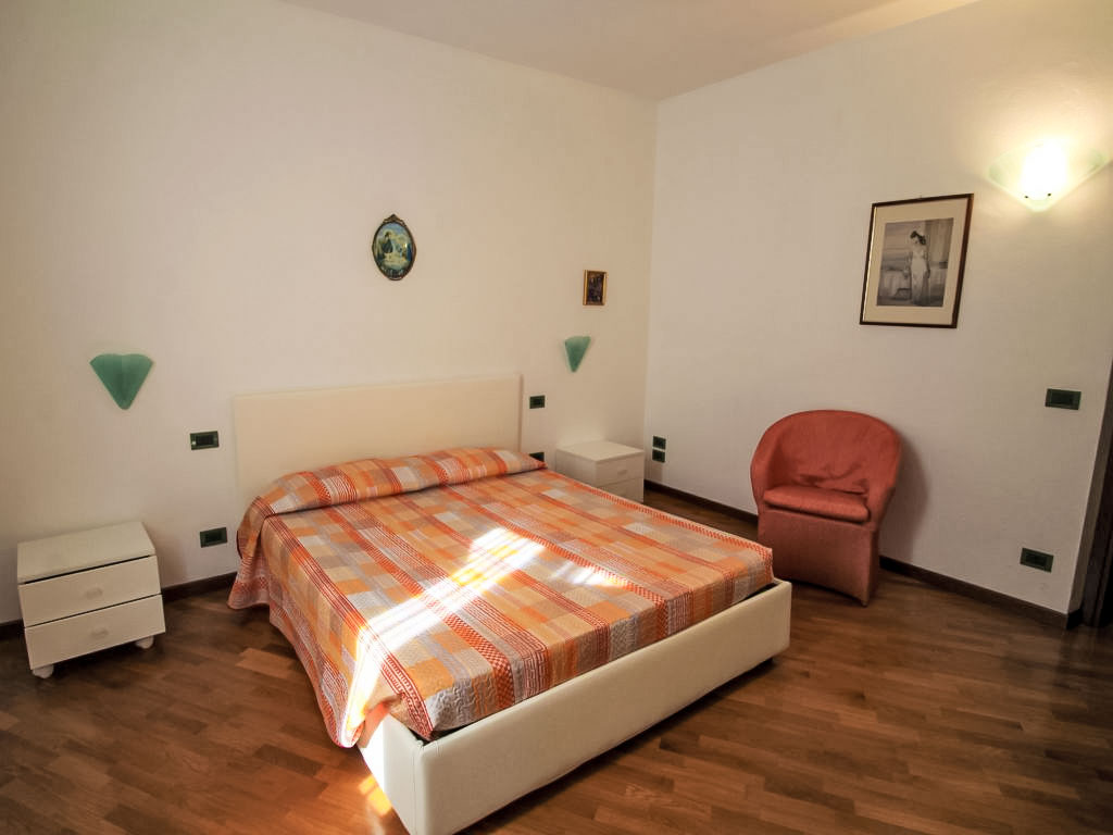 4-Zimmer-Wohnung 100 m2, im erhöhten Erdgeschoss. Zweckmässig eingerichtet: grosses Wohn-/Esszimmer mit offenem Kamin und TV. Ausgang zur Terrasse. 2 Doppelzimmer. 1 Zimmer mit 1 Bett. Kochnische (4 Kochplatten, Geschirrspüler, Mikrowelle, Tiefkühler, elektrische Kaffeemaschine). Dusche/Bidet/WC, sep. WC. Ölheizung (extra). Heizung nur verfügbar von 15.10. bis 15.04. Terrasse 30 m2. Terrassenmöbel. Zur Verfügung: Waschmaschine. CIR: 017076-CNI-00081