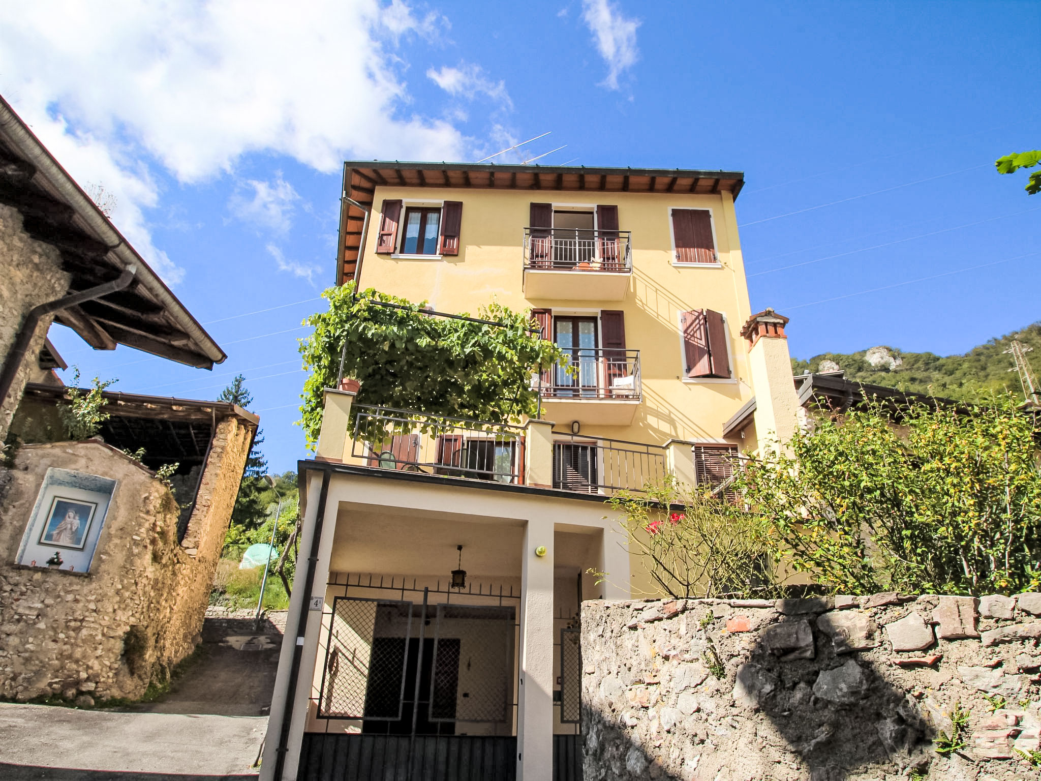 Rustikales Dreifamilienhaus "Formaga", auf 3 Stockwerken. Im Weiler Formaga, 8 km vom Zentrum von Gargnano, ruhige, erhöhte Lage, verkehrsberuhigte Zone, 8 km vom See. Im Hause: Einstellraum für Fahrräder. Zufahrt bis zum Haus. Öffentliche Parkplätze 50 m. Lebensmittelgeschäft 2 km, Supermarkt 8 km, Restaurant 500 m, Bushaltestelle 50 m. Bitte beachten: Fahrzeug empfohlen.
