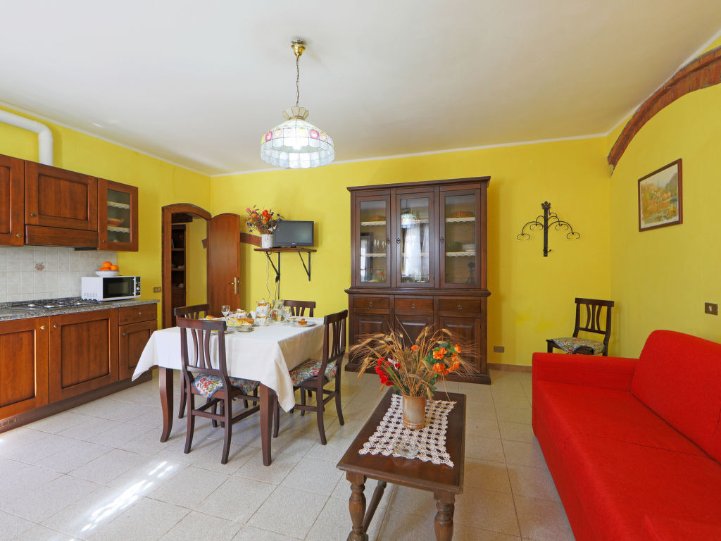 "Il Gelsomino", 2-Zimmer-Wohnung 55 m2, im Erdgeschoss. Komfortabel und gemütlich eingerichtet: offenes grosses Wohnzimmer mit 1 Doppeldiwanbett und Sat-TV. Ausgang zur Terrasse. 1 Doppelzimmer. Kochnische (4 Kochplatten, Mikrowelle, elektrische Kaffeemaschine). Dusche/Bidet/WC. Terrassenmöbel. Zur Verfügung: Haartrockner. Internet (Wireless LAN, gratis). 1 Haustier/Hund erlaubt.