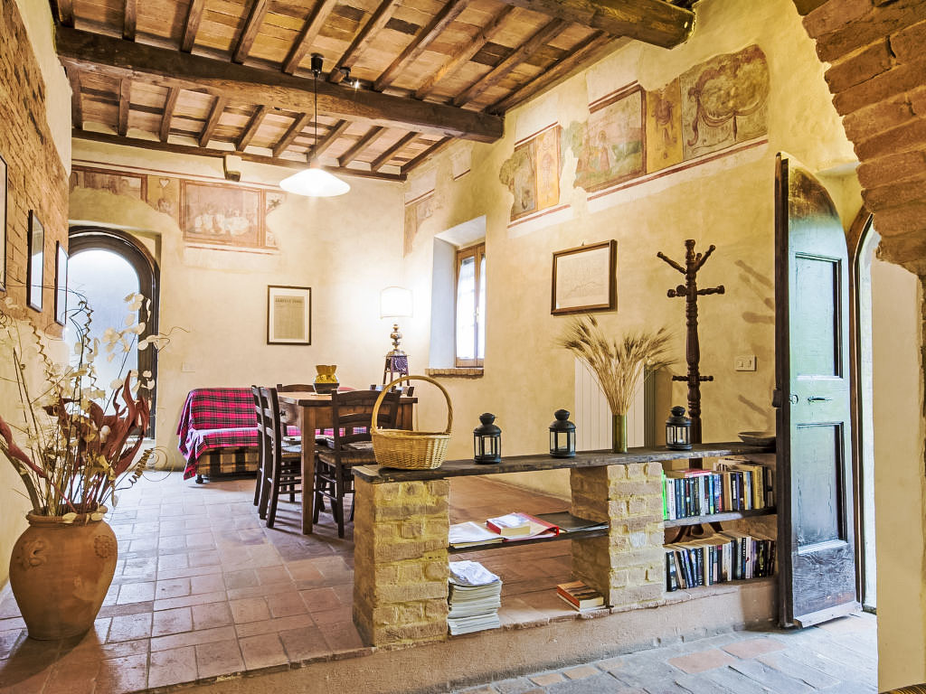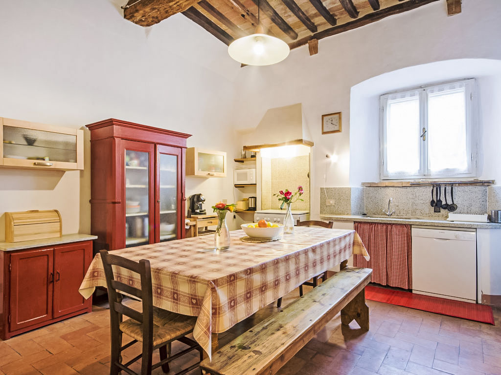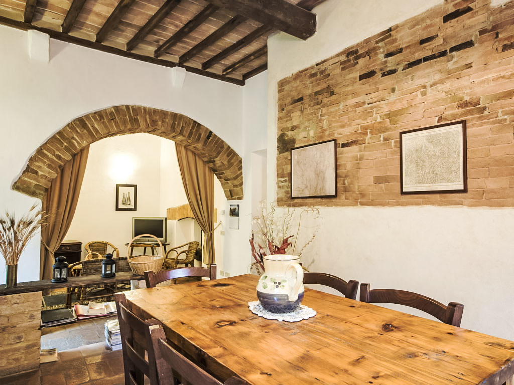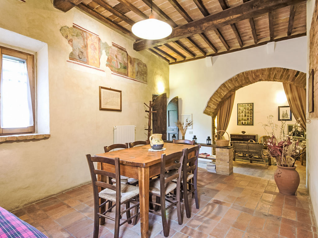 Diese Seite des renovierten Landguts macht den ältesten Teil des Hauses aus, einst wohl ein Patrizier- oder ein Jagdhaus. Einige restaurierte Malereien und Dekorationen im Wohn-/Esszimmer deuten darauf hin, dass dieser Hausteil einst als Stall genutzt wurde, andererseits aber auch eine noblere Funktion hatte. Im Jahre 1850 wurde das ehemalige Landhaus wohl zum Nobelhaus umfunktioniert. Neben der zu vermietenden Ferienwohnung gibt es zwei weitere Wohnungen - die eine wird gelegentlich vom Eigentümer und die andere vom Dienstpersonal bewohnt. Bei dieser Gelegenheit benutzen sie das Schwimmbad gelegentlich. Sehr altes Bauerngut "Podere Valle di Sotto". 2 km vom Zentrum von Volterra, 30 km vom Zentrum von San Gimignano, 40 km vom Zentrum von Pisa, ruhige Lage auf einem Hügel, im Grünen. Zur Mitbenutzung: Tischtennis. Zur Alleinbenutzung: Garten, Schwimmbad (6 x 12 m, 120 - 200 cm tief, 16.05.-15.10.) mit Innentreppe und Salzelektrolyse-Reinigungssystem. Gartenmöbel, Grill, Kinderspielplatz. Im Hause: mit TV, Internetzugang, Waschmaschine. Wohnungsreinigung möglich (extra). Zufahrt (Naturweg). Parkplatz beim Haus. Einkaufsgeschäft 2 km, Restaurant 2 km, Bushaltestelle 2 km, Bahnstation 10 km.