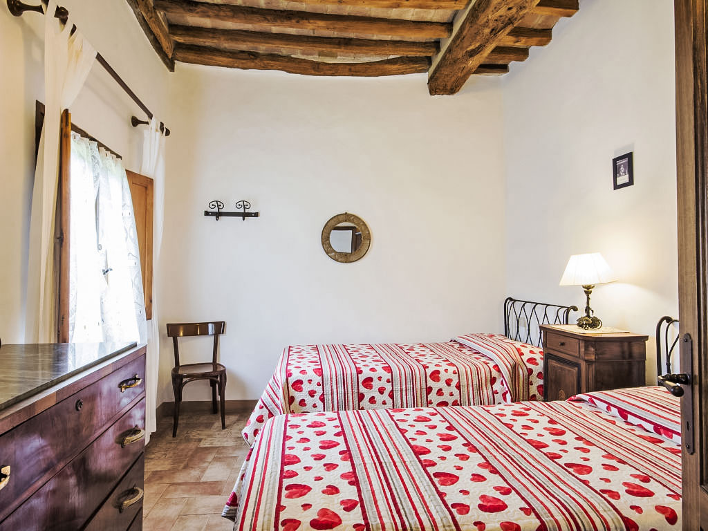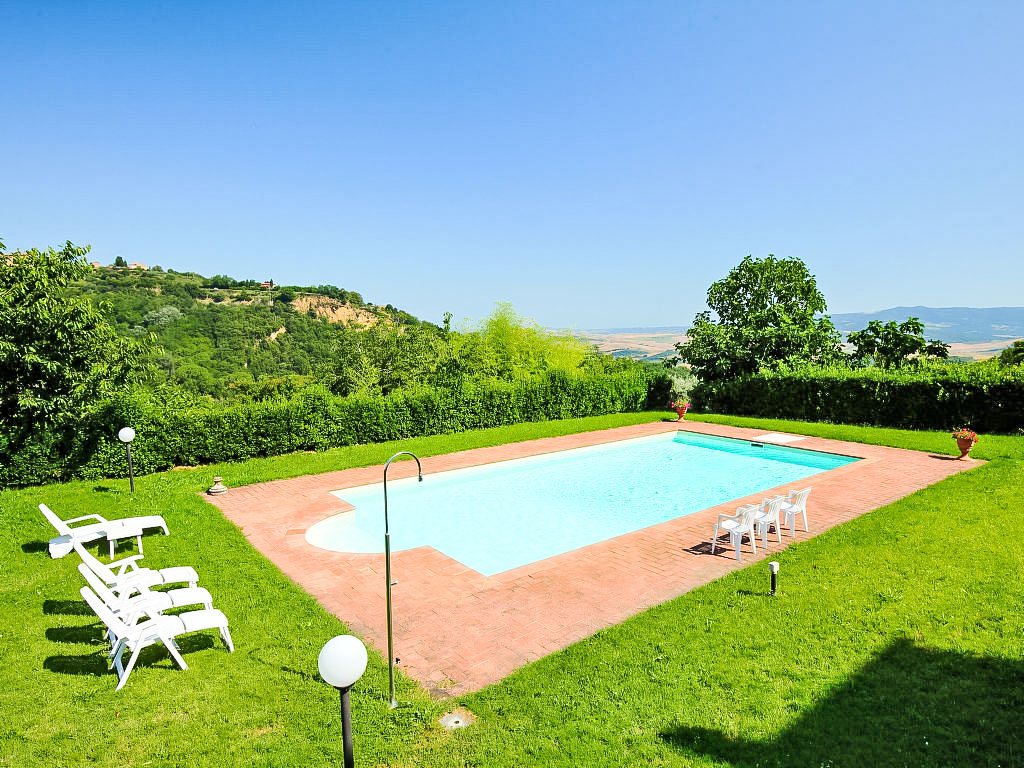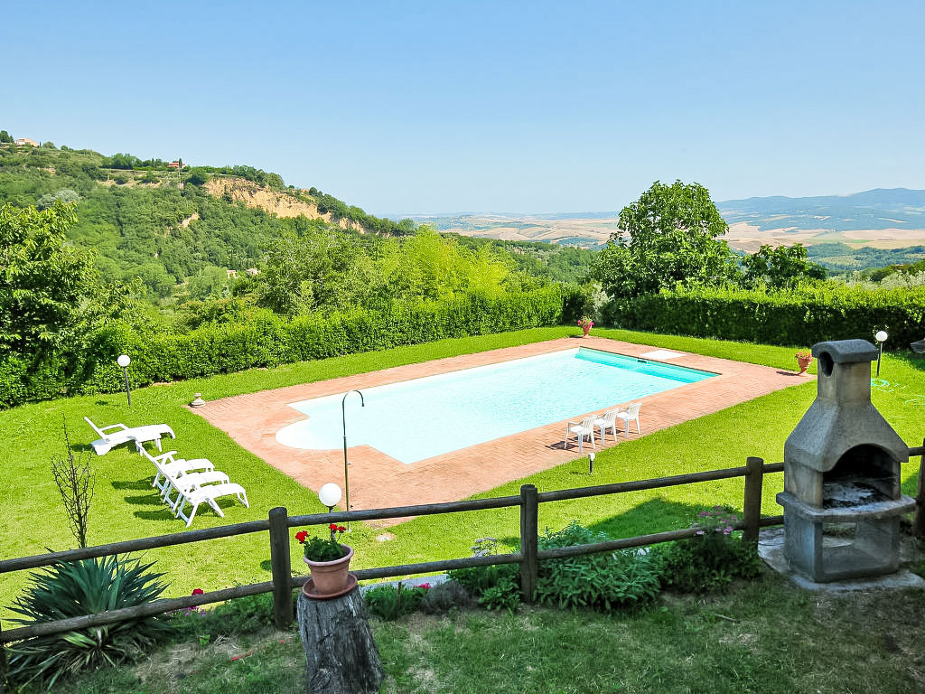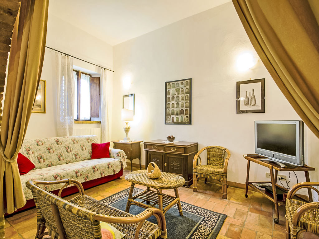 Diese Seite des renovierten Landguts macht den ältesten Teil des Hauses aus, einst wohl ein Patrizier- oder ein Jagdhaus. Einige restaurierte Malereien und Dekorationen im Wohn-/Esszimmer deuten darauf hin, dass dieser Hausteil einst als Stall genutzt wurde, andererseits aber auch eine noblere Funktion hatte. Im Jahre 1850 wurde das ehemalige Landhaus wohl zum Nobelhaus umfunktioniert. Neben der zu vermietenden Ferienwohnung gibt es zwei weitere Wohnungen - die eine wird gelegentlich vom Eigentümer und die andere vom Dienstpersonal bewohnt. Bei dieser Gelegenheit benutzen sie das Schwimmbad gelegentlich. Sehr altes Bauerngut "Podere Valle di Sotto". 2 km vom Zentrum von Volterra, 30 km vom Zentrum von San Gimignano, 40 km vom Zentrum von Pisa, ruhige Lage auf einem Hügel, im Grünen. Zur Mitbenutzung: Tischtennis. Zur Alleinbenutzung: Garten, Schwimmbad (6 x 12 m, 120 - 200 cm tief, 16.05.-15.10.) mit Innentreppe und Salzelektrolyse-Reinigungssystem. Gartenmöbel, Grill, Kinderspielplatz. Im Hause: mit TV, Internetzugang, Waschmaschine. Wohnungsreinigung möglich (extra). Zufahrt (Naturweg). Parkplatz beim Haus. Einkaufsgeschäft 2 km, Restaurant 2 km, Bushaltestelle 2 km, Bahnstation 10 km.