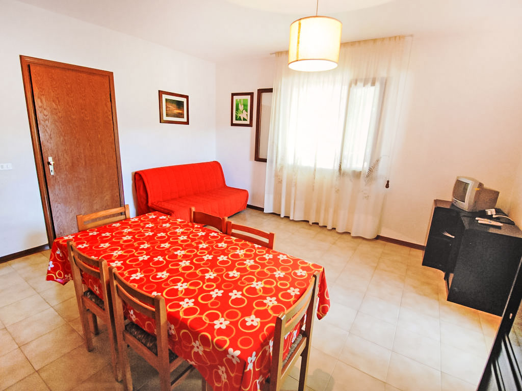 3-Zimmer-Wohnung 65 m2. Objekt geeignet für 4 Erwachsene + 2 Kinder. Hell, einfach und komfortabel eingerichtet: Wohn-/Schlafzimmer mit 1 Diwanbett, offenem Kamin und Sat-TV. Ausgang zur Terrasse. 1 Zimmer mit 3 Betten. 1 Zimmer mit 1 Doppelbett. Kochnische (4 Kochplatten, Mikrowelle, Tiefkühler). Dusche/Bidet/WC. 3 Balkone oder Garten. Terrassenmöbel, Gartengrill. Sicht auf die Ortschaft. Zur Verfügung: Waschmaschine. Parkplatz. Geeignet für Familien. 1 Haustier/Hund erlaubt.