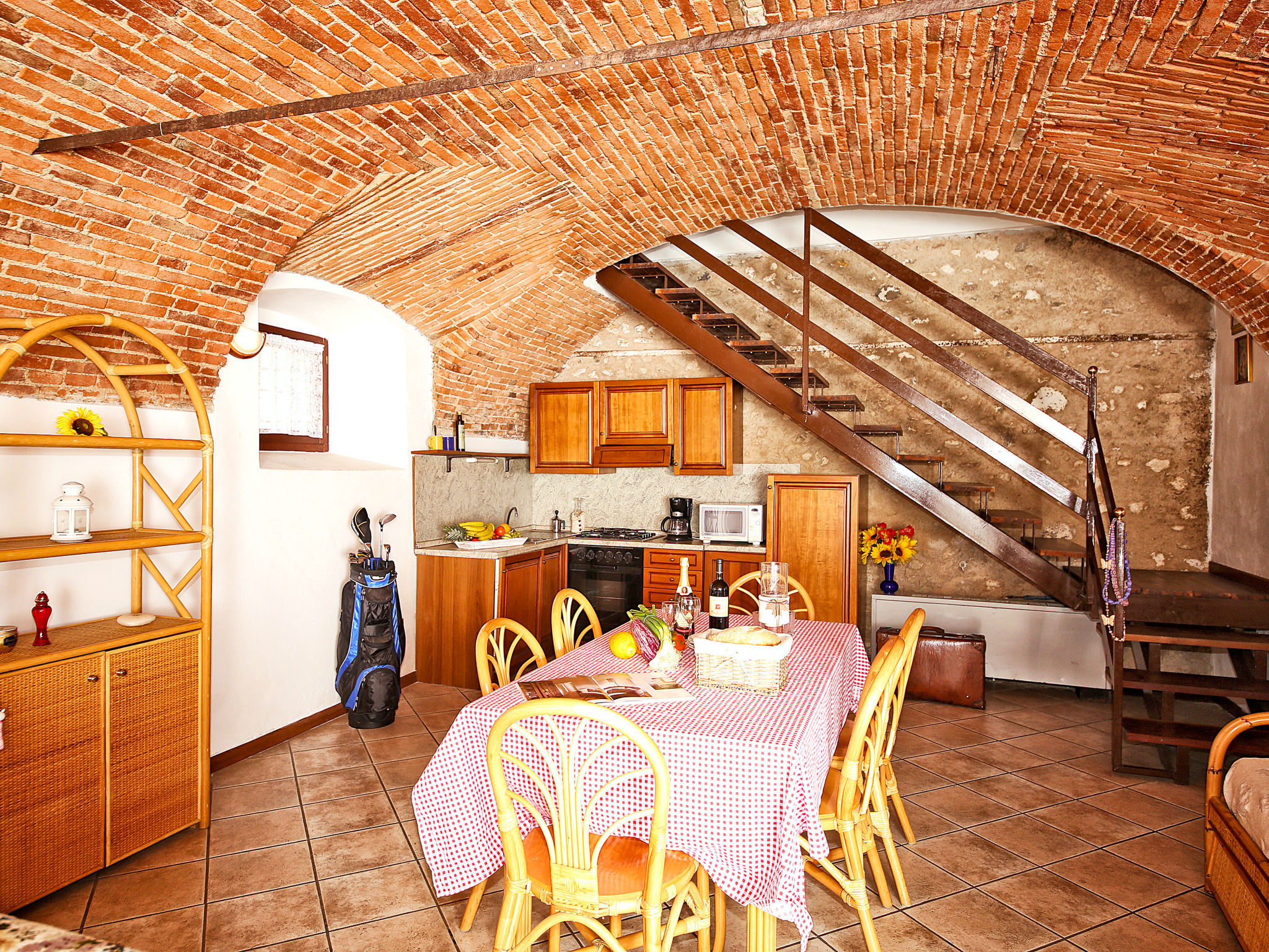 "Villetta", 3-Zimmer-Haus 80 m2 auf 2 Stockwerken. Komfortabel und rustikal eingerichtet: Wohn-/Schlafzimmer mit 1 Diwanbett, 1 Ausziehbett, Esstisch und Sat-TV. Offene Küche (Geschirrspüler, 4 Flammen, Wasserkocher, Mikrowelle, elektrische Kaffeemaschine). Obergeschoss: 2 Doppelzimmer. Ausgang zum Balkon. Dusche/Bidet/WC. G-Heizung, Klimaanlage (extra). Balkon, Gartensitzplatz. Balkonmöbel. Sicht auf den Garten. Zur Verfügung: Safe. Internet (Wireless LAN, gratis). Parkplatz (1 Auto). Maximal 1 kleines Haustier/Hund erlaubt. 017170-AGR-00002