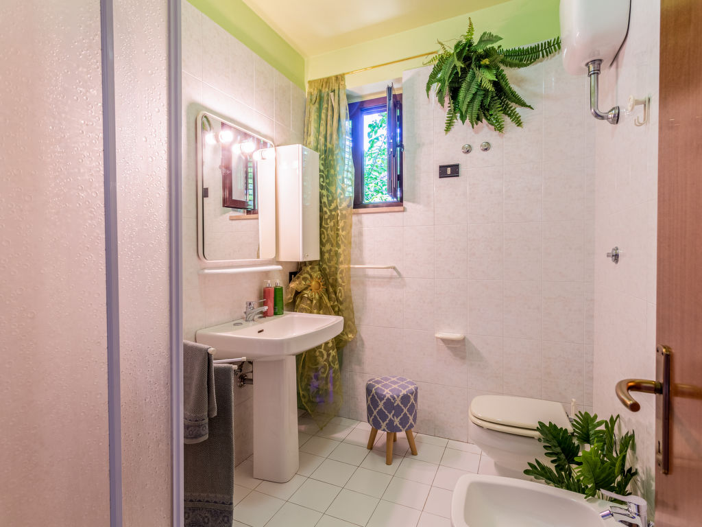 5-Zimmer-Haushälfte, 2 Etagen, ca. 115 m². Erdgeschoss: Wohnraum mit Sitzgruppe und Kamin, offen zu Esszimmer mit Küchenzeile (4 Flammen, Backofen, Kühl-/Gefrierkombination, Toaster). Dusche/WC. Flur. Über Wendeltreppe ins Obergeschoss: Doppelzimmer mit Balkon (herrliche Aussicht). Schlafzimmer mit 2 Etagenbetten (0,80 m breit). Doppelzimmer, Balkon. Dusche/WC.