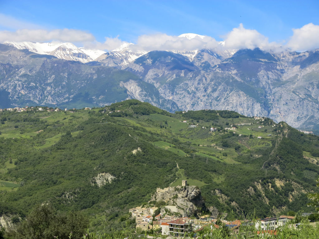 Agriturismo DI MAJA, ein ehemaliges restauriertes Bauernhaus mit 2 separaten Hausteilen, steht im ländlichen Ortsteil Aia di Rocco, 1,5 km oberhalb von Roccascalegna. Schöne Lage auf einem Hügel mit Sicht auf die Berge und bis hin zum Lago di Bomba (Stausee in 15 km Entfernung, Surfmöglichkeit, Schiffsausflüge). Zum Meer 30 km. Parkplätze am Haus. Separate Zufahrt sowie separater Eingang zu unserem Hausteil. Privatparkplatz. Das Ferienhaus gehört zu einem 10 ha großen landwirtschaftlichem Betrieb, dessen biologische Produkte (Olivenöl) am Ort gekauft werden können. Naturbelassenes, ca. 1000 m² großes Hanggrundstück mit Olivenhain. Vor dem Haus mit herrlicher Aussicht Terrasse (4 Sonnenliegen, Gartenmobiliar) sowie schattiger Freisitz und gemauerter Grill. Feriengerechte Einrichtung mit rustikalen Möbeln. Helle Fliesenböden. TV. Waschmaschine (€ 8 pro Waschgang). Fliegengitter in den Schlafzimmern. Öl-Zentralheizung.