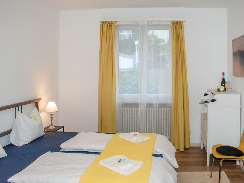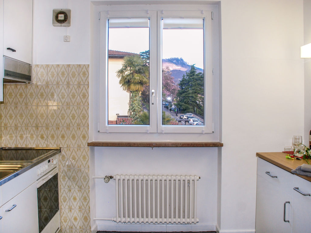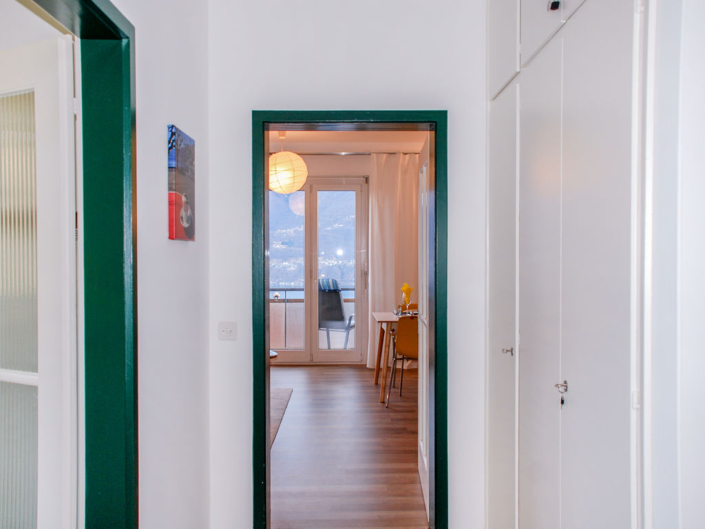 "Collina d'Oro", 3-Zimmer-Wohnung 60 m2 im 4. Stock. Hell, teilweise renoviert im Jahre 2020, gemütlich eingerichtet: Wohn-/Esszimmer mit Esstisch und Kabel-TV (Flachbildschirm), Radio. Ausgang zum Balkon. 1 Doppelzimmer mit 1 Doppelbett (180 cm, Länge 200 cm). 1 Zimmer mit 1 Bett (90 cm, Länge 200 cm), 1 Doppelbett (2 x 80 cm, Länge 200 cm). Küche (Backofen, Geschirrspüler, 4 Glaskeramikherd Platten, Toaster, Wasserkocher, elektrische Kaffeemaschine, Kapseln für die Kaffeemaschine (Nespresso Delonghi) extra, Fondue Set (Käse)). Bad, sep. WC. Heizung. Kleiner Balkon, Südlage und Westlage. Balkonmöbel. Sehr schöne Panoramasicht auf den See, die Berge, die Landschaft und die Ortschaft. Zur Verfügung: Bügeleisen, Kinderhochstuhl, Babybett bis 2 Jahre (extra), Haartrockner. Internet (Wireless LAN, gratis). Bitte beachten: Nichtraucher-Unterkunft. Maximal 2 kleine Haustiere/Hunde erlaubt. Feuerlöscher.