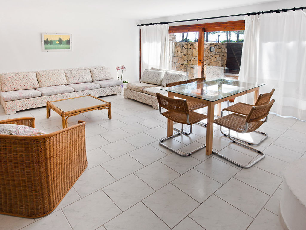 "Pineta Uno (BSA141)", 3-Zimmer-Wohnung 80 m2. Hell, schön eingerichtet: grosses Wohn-/Esszimmer mit Esstisch, TV und Klimaanlage. 1 Zimmer mit 1 Doppelbett. 1 Zimmer mit 2 Schlafmöglichkeiten. Küche (Geschirrspüler, 4 Flammen). Dusche/WC. Keine Heizmöglichkeit. Balkon oder Terrasse. Balkonmöbel. Zur Verfügung: Waschmaschine, Babybett bis 2 Jahre (extra). Internet (Wireless LAN, gratis). Maximal 1 kleines Haustier/Hund erlaubt.