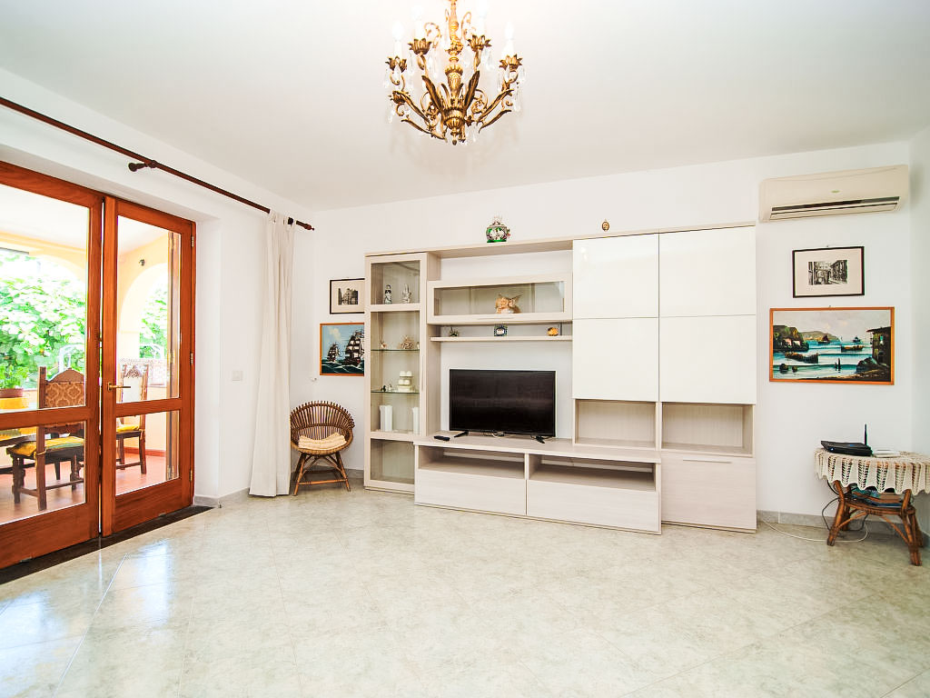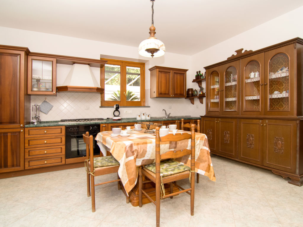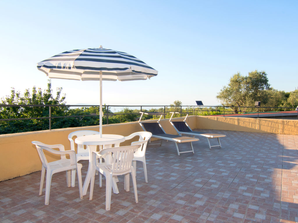 3-Zimmer-Haus 100 m2. Teilweise renoviert im Jahre 2016, schön und rustikal eingerichtet: grosses Wohnzimmer mit 1 Doppeldiwanbett und TV (Flachbildschirm). Ausgang zum Gartensitzplatz. 1 grosses Doppelzimmer. 1 Zimmer mit 2 Betten und Dusche/Bidet/WC. Küche (4 Kochplatten, Backofen, Tiefkühler) mit Esstisch. Ausgang zum Gartensitzplatz. Bad/Bidet/WC. Klimaanlage, Warmluftheizung (extra). Heizung nur verfügbar von 01.11. bis 31.03. Grosse Terrasse, grosser Gartensitzplatz. Terrassenmöbel, Liegestühle. Panoramasicht auf das Meer, die Landschaft und die Ortschaft. Zur Verfügung: Waschmaschine. Internet (Wireless LAN, gratis). Parkplatz Nr. 4 (eingezäunt). Geeignet für Familien.