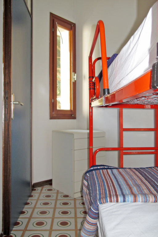 3-Zimmer-Wohnung, 1.-4. Etage, ca. 45 m². Wohnraum mit Sitzcouch, Essplatz, Küchenzeile (3-4 Flammen, Kühlschrank). Schlafzimmer mit Doppelbett und Einzelbett. Schlafzimmer mit Etagenbett. Kleine Dusche/WC.