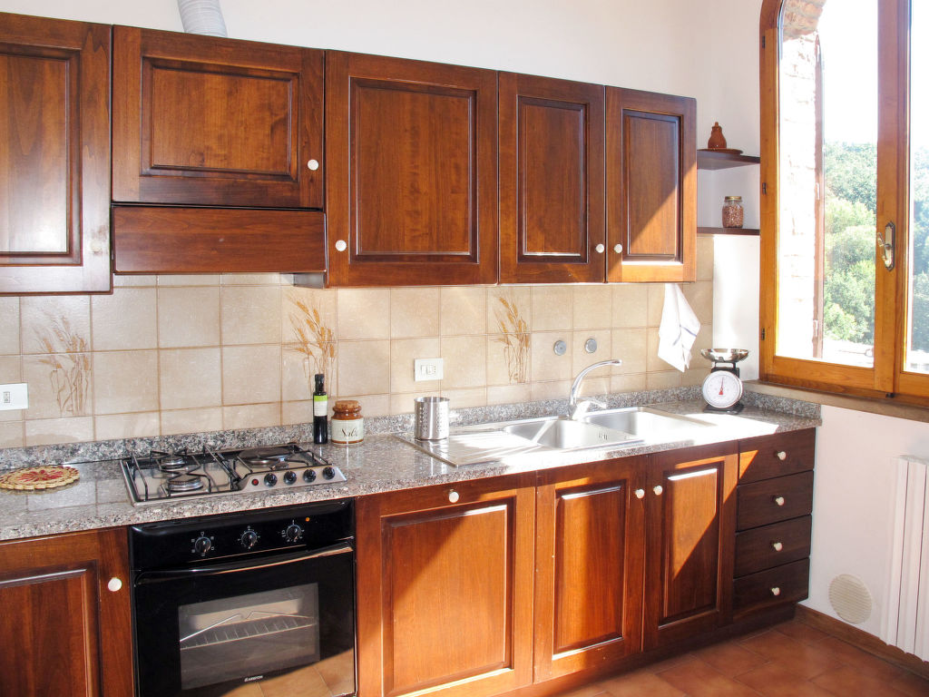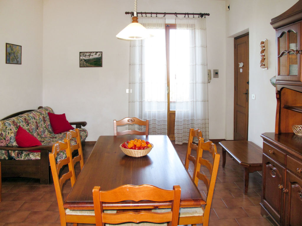 "San Vivaldo, Nr. 12", 4-Zimmer-Wohnung 100 m2 im 1. Stock. Zweckmässig und rustikal eingerichtet: Wohn-/Schlafzimmer mit 1 Doppeldiwanbett, Esstisch und Sat-TV. Ausgang zur Terrasse. 1 Zimmer mit 1 Doppelbett. 1 Zimmer mit 2 Betten. 1 Zimmer mit 1 x 2 Etagenbetten. Küche (Backofen, Geschirrspüler, 4 Flammen, Toaster, Wasserkocher, elektrische Kaffeemaschine). Bad/Bidet/WC. Keine Heizmöglichkeit. Terrasse. Terrassenmöbel. Panoramasicht. Zur Verfügung: Kinderhochstuhl, Babybett. Bitte beachten: Nichtraucher-Unterkunft. Maximal 2 Haustiere/Hunde erlaubt.