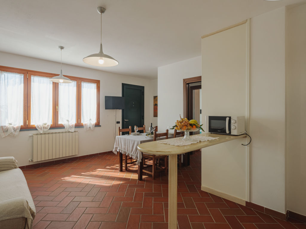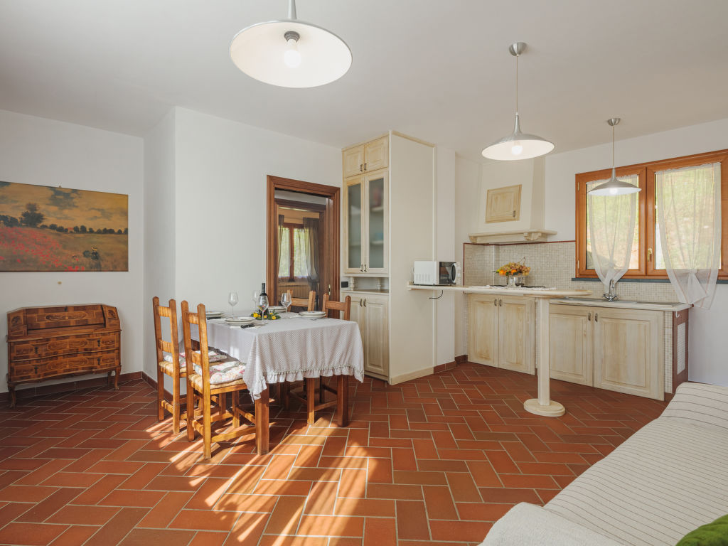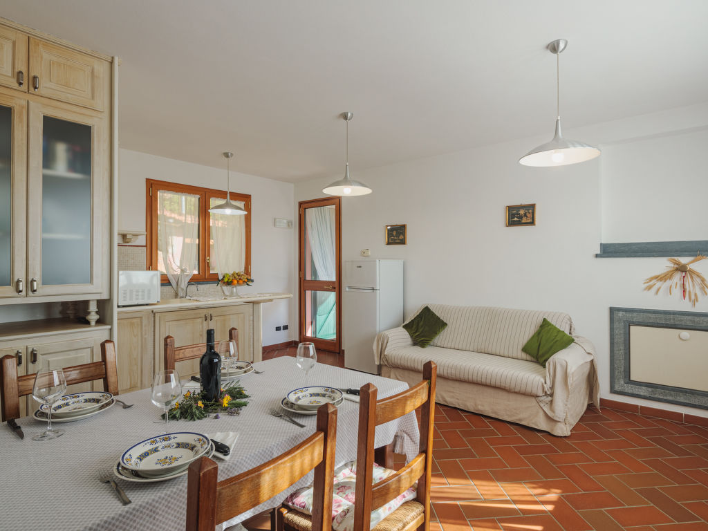 3-Zimmer-Wohnung 65 m2 im 1. Stock. Schön und gemütlich eingerichtet: Wohn-/Esszimmer mit offenem Kamin (nur Deko), Esstisch und Sat-TV. Ausgang zum Garten. 1 Zimmer mit 2 Betten. 1 Doppelzimmer. Kleine, offene Küche (5 Flammen, Toaster, Mikrowelle, Tiefkühler, elektrische Kaffeemaschine). Dusche/Bidet/WC. G-Heizung. Zur Verfügung: Haartrockner. Internet (Wireless LAN). Bitte beachten: Nichtraucher-Unterkunft.