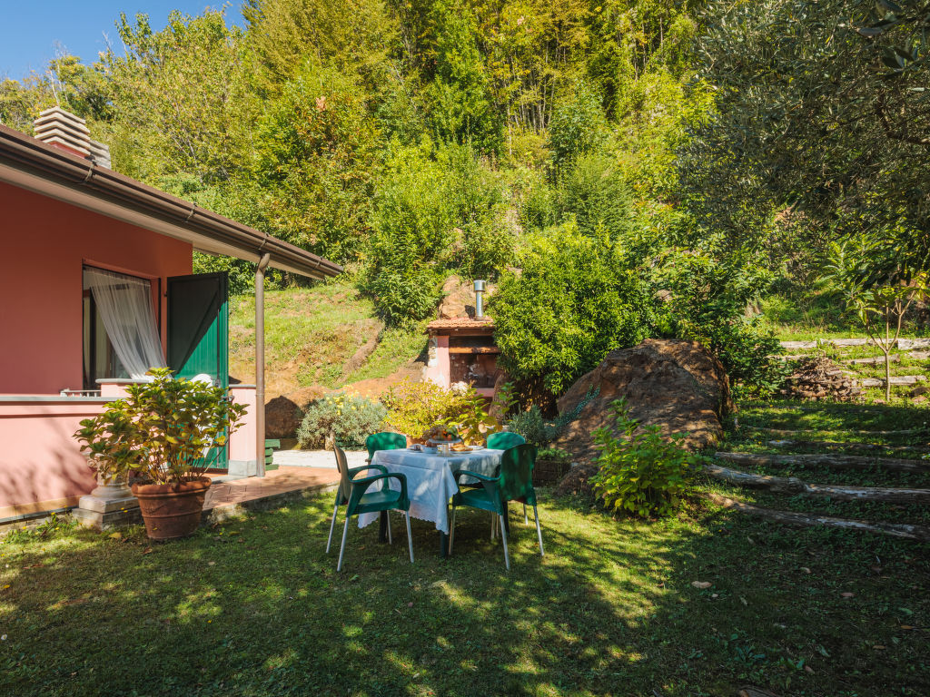 Massa 12 km von Marina di Massa: Alleinstehendes Zweifamilienhaus "Brugiana", 400 m.ü.M., umgeben von Bäumen. Im Weiler Bergiola Maggiore, 12 km vom Zentrum von Marina di Massa, 7 km vom Zentrum von Massa, ausserhalb des Ortes, 55 km vom Zentrum von Pisa, 12 km vom Meer. Zur Mitbenutzung: Terrassengarten, 4'800 m2 (eingezäunt) mit Pflanzen und Bäumen, Naturgarten. Zur Alleinbenutzung: Aussendusche (Rutschbahn), Parkplatz auf dem Grundstück. Lebensmittelgeschäft 5 km, Restaurant 200 m, Bahnstation "Massa" 7 km, Sandstrand "Marina di Massa" 12 km. Reitstall 1.5 km. Bitte beachten: Fahrzeug empfohlen.