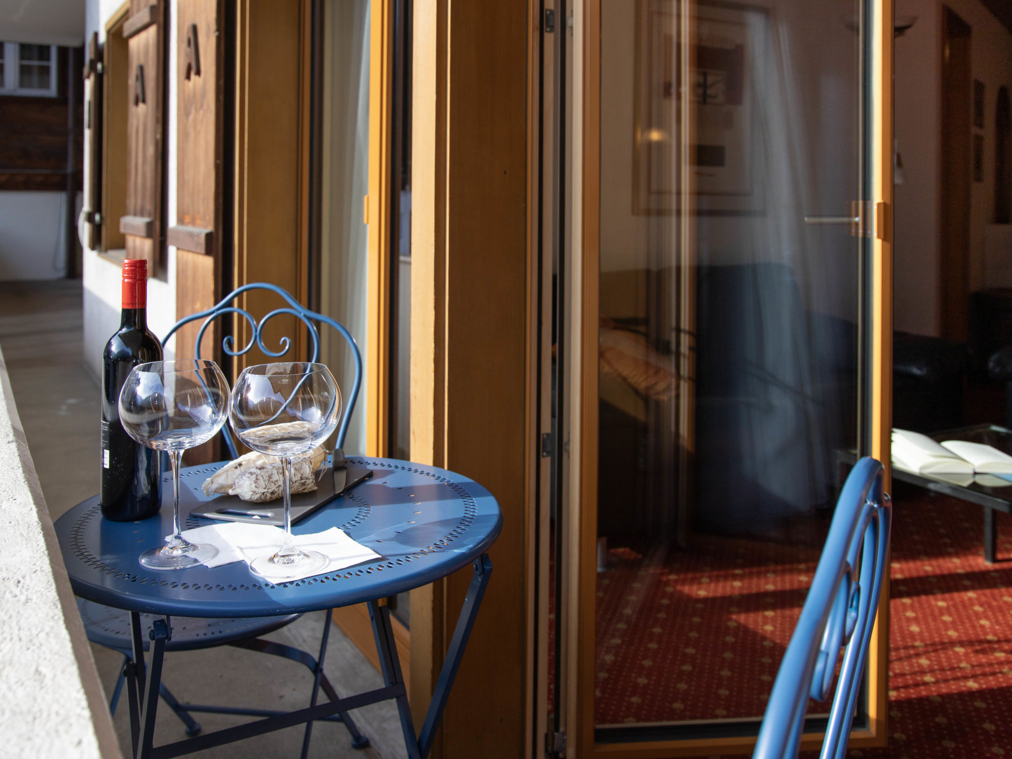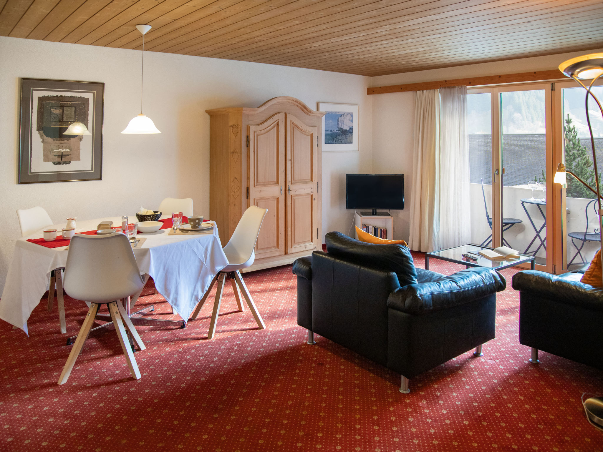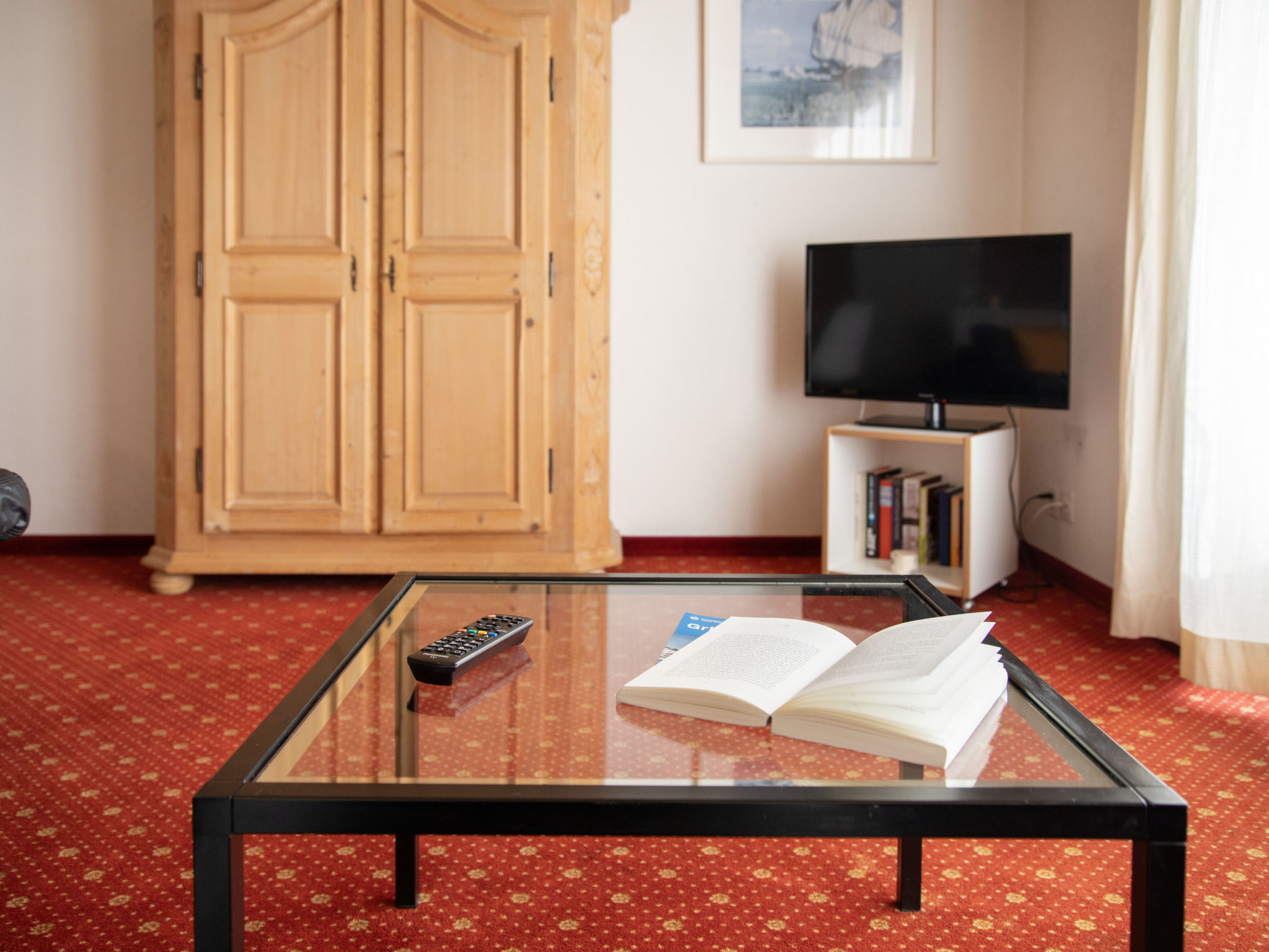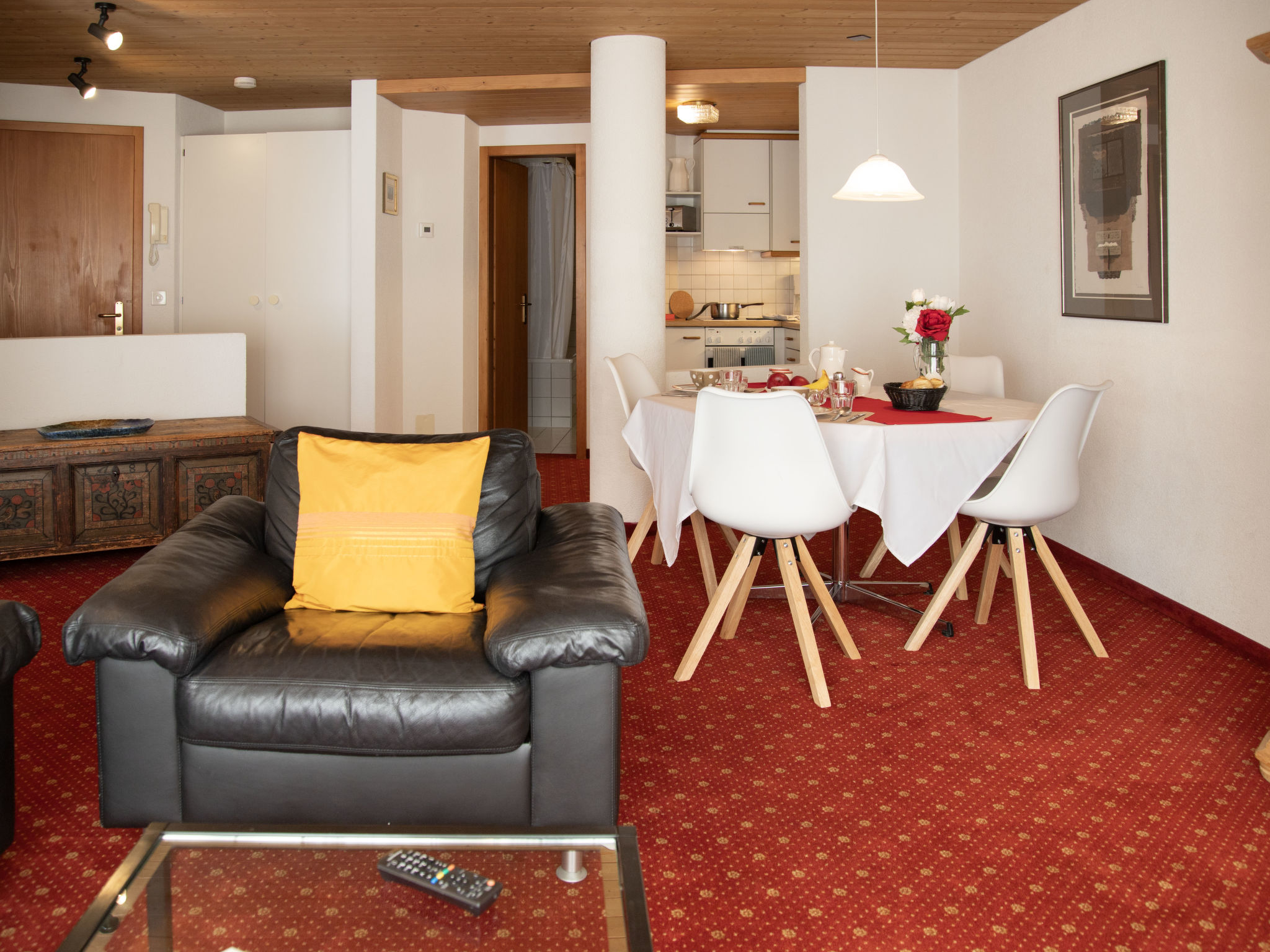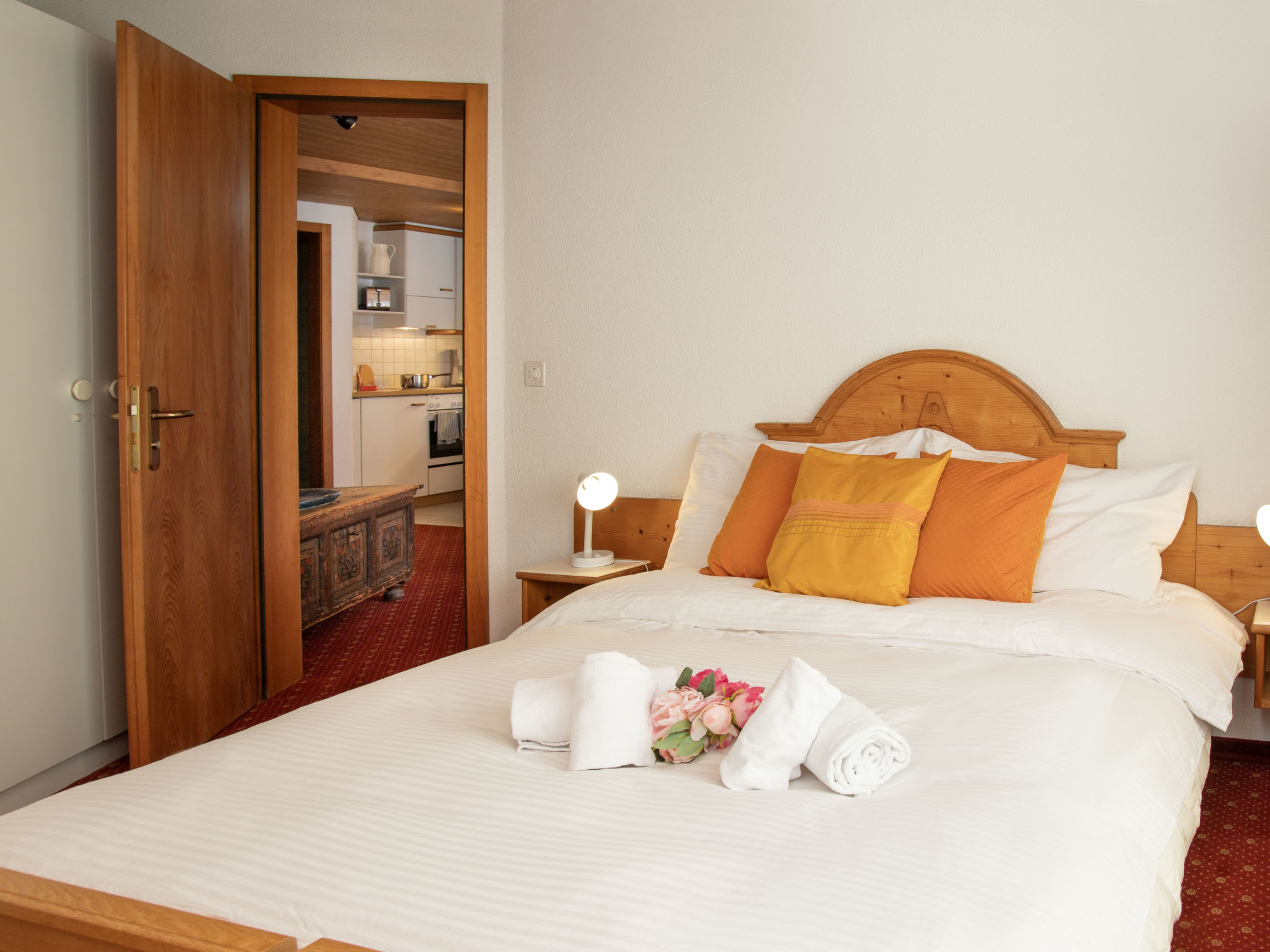 2-Zimmer-Wohnung 47 m2 im 1. Stock, Südlage. Wohn-/Esszimmer mit Kabel-TV (Flachbildschirm). 1 Doppelzimmer. Offene Küche (Backofen, 4 Glaskeramikherd Platten, Toaster, Wasserkocher, elektrische Kaffeemaschine). Bad/WC. Kleiner Balkon, Südlage. Schöne Sicht auf die Berge. Zur Verfügung: Haartrockner. Internet (Wireless LAN, gratis). Bitte beachten: Nichtraucher-Unterkunft. Maximal 1 Haustier/Hund erlaubt. Ein Fondue Set (Fleisch oder Käse) sowie ein Raclette Ofen kann an der Rezeption ausgeliehen werden. Sehr schmaler Balkon. Keine Balkonmöbel.