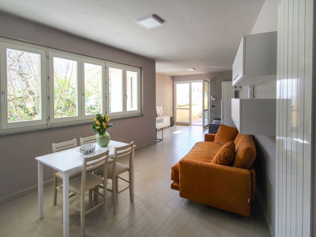 "A", 3-Zimmer-Wohnung 80 m2, im ebenerdigen Untergeschoss. Zweckmässig und modern eingerichtet: Wohn-/Esszimmer mit 1 Doppeldiwanbett (160 cm), TV. Ausgang zum Gartensitzplatz. 1 Doppelzimmer. 1 Zimmer mit 1 Doppeldiwanbett (160 cm). Kochnische (Backofen, 4 Induktionskochplatten, Tiefkühler, elektrische Kaffeemaschine). Dusche/Bidet/WC, Doppelwaschbecken. G-Heizung. Heizung nur verfügbar von 15.10. bis 15.04. Kleiner Gartensitzplatz. Balkonmöbel. Zur Verfügung: Waschmaschine, Haartrockner. Internet (Wireless LAN, gratis). CIR:012045-CIM-00008