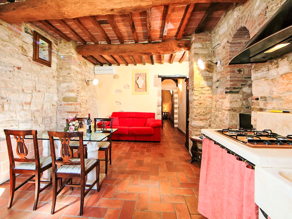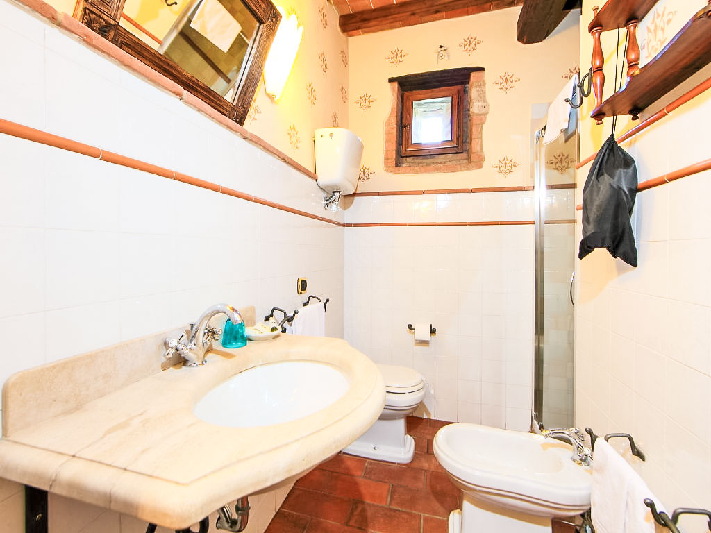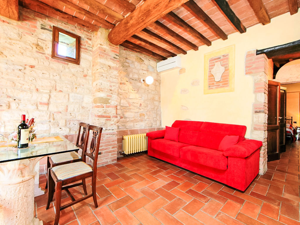 Casale Ischieto ist ein mittelalterliches Bauernhaus, das vor kurzem sorgfältig restauriert wurde. 800 m von der Ortschaft Serre di Rapolano entfernt. Nur 28 km von Siena und 30 km von Montalcino entfernt, liegt es in der bezaubernden Landschaft südlich von Siena, in hügeliger Lage nur 2 km von einem berühmten Thermalbad entfernt. In fünf hübsche Wohnungen unterteilt, ausgestattet mit Sat-TV und Heizung (extra, gemäss Verbrauch). Das Haus verfügt über ausgestattete Aussenbereiche im Grünen, ein Schwimmbecken mit Druckstrahlmassage zur alleinigen Benutzung der Gäste, Bogenschiessstand und Mountain-Bikes (zwei pro Wohnung, gratis). Das Restaurant des Landgutes ist jeden Tag geöffnet (abends), auf Anfrage auch mittags. Für Pferdeliebhaber organisiert der Besitzer auf Anfrage und je nach Verfügbarkeit Ausritte in die benachbarten Wälder (die Ställe befinden sich im Umkreis von 6 km). Sehr alter Bauernhof "Casale Ischieto", renoviert, umgeben von Feldern. 800 m vom Zentrum von Serre di Rapolano, 28 km vom Zentrum von Siena, 30 km vom Zentrum von Montalcino, auf einem Hügel, im Grünen. Zur Mitbenutzung: Grundstück 50 ha, Schwimmbad (16 x 9 m, 80 - 165 cm tief, saisonale Verfügbarkeit: 15.Mai.-03.Okt.) mit Innentreppe. Aussendusche, Gartenmöbel. Zur Alleinbenutzung: Gartenmöbel. Im Hause: Restaurant, Bar, Heizung vor Ort zu zahlen (01.11.-01.04.), Fahrräder vorhanden. Zufahrt bis zum Haus. Parkplatz auf dem Grundstück. Einkaufsgeschäft 800 m, Bushaltestelle 500 m, Bahnstation "Rapolano Terme" 2 km, Thermalbad "Rapolano Terme" 2 km. Golfplatz (9 Loch) 21 km, Tennis 2 km, Reitstall 6 km. Nahe gelegene Sehenswürdigkeiten: Castelnuovo Berardenga 18 km, Montepulciano 31 km, Pienza 37 km, San Quirico D'orcia 44 km. Bitte beachten: geeignet für Familien, geeignet für Senioren. In diesem Haus sind weitere Ferienwohnungen mietbar.