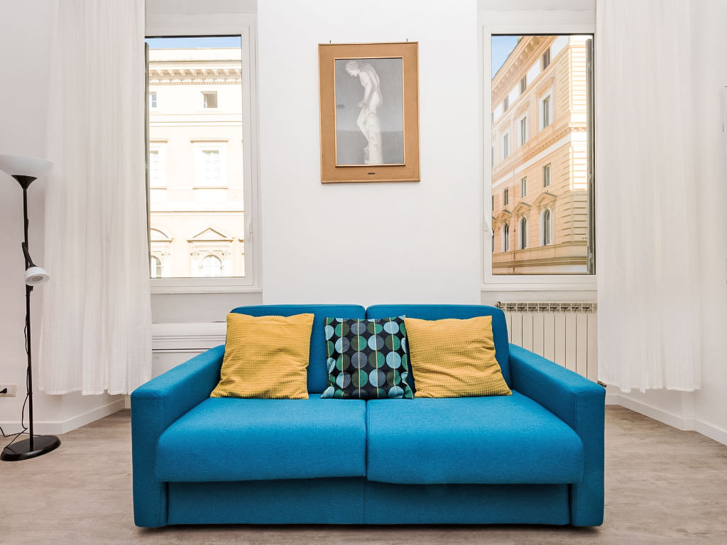 Historisches Appartementhaus "Vittorio Emanuele", aus dem 17. Jahrhundert. Im Ortszentrum von Roma, im Bezirk Piazza Navona, zentrale, belebte Lage, im Herzen der Stadt, an einer Hauptstrasse. Im Hause: Fahrstuhl. Öffentliches Parkhaus in 500 m, extra. Straßenbahn "Number 8 Arenula-Cairoli" 800 m, Bushaltestelle "Chiesa Nuova" 70 m, Bahnstation "Termini" 3.5 km, U-Bahnstation "Colosseo" 2.8 km. Nahe gelegene Sehenswürdigkeiten: Piazza Navona 270 m, Campo dei Fiori 350 m, San Luigi dei Francesi 600 m, Piazza San Pietro 1.2 km, Trastevere 900 m. Die Wohnung befindet sich in einer für den Verkehr begrenzt zugänglichen Zone (ZTL).