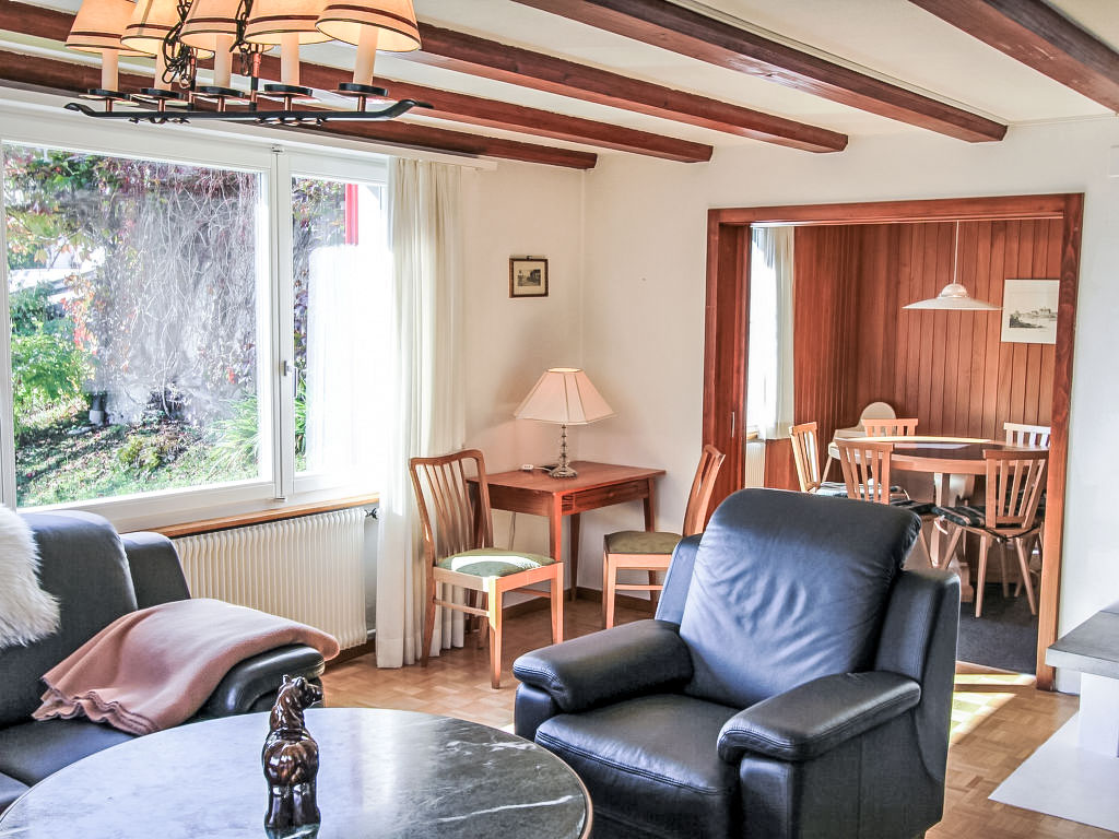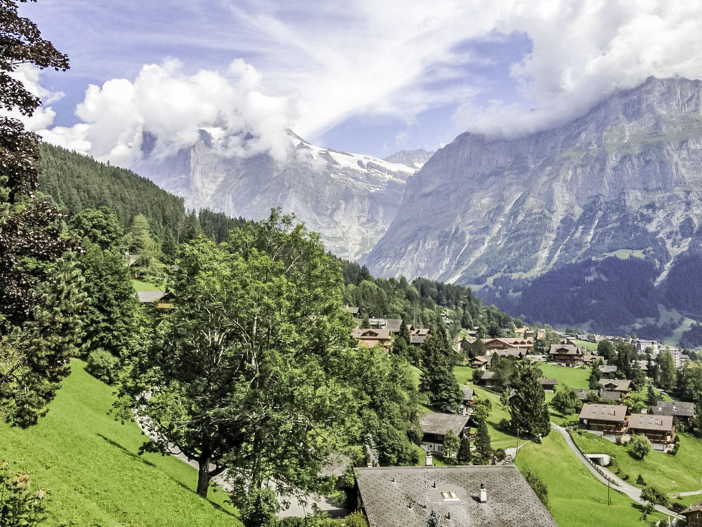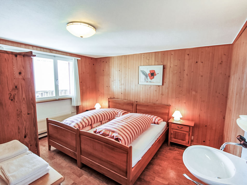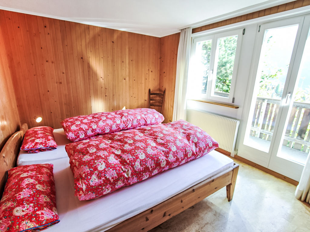4-Zimmer-Wohnung 100 m2, im erhöhten Erdgeschoss, Südostlage. Gemütlich eingerichtet: Wohn-/Esszimmer mit offenem Kamin und Kabel-TV (Flachbildschirm), Radio, CD und DVD. Ausgang zur Terrasse, Richtung Süden und Richtung Westen. 2 Zimmer, jedes Zimmer mit 2 Betten (90 cm, Länge 200 cm). 1 Zimmer mit 1 x 2 Etagenbetten (90 cm, Länge 200 cm). Küche 20 m2 (Backofen, Geschirrspüler, 4 Glaskeramikherd Platten, Toaster, Wasserkocher, Mikrowelle, elektrische Kaffeemaschine, Racletteofen, Fondue Set (Käse)) mit Durchreiche. Bad/WC, Dusche, sep. WC. Parkettböden, Natursteinböden. Grosse Terrasse 30 m2, Südlage und Westlage. Balkonmöbel. Herrliche Sicht auf die Berge, das Tal und Wetterhorn und Eigernordwand. Zur Verfügung: Holz (extra). Internet (Wireless LAN, gratis). Parkplatz (1 Auto) beim Haus. Bitte beachten: Nichtraucher-Unterkunft. Feuerlöscher.