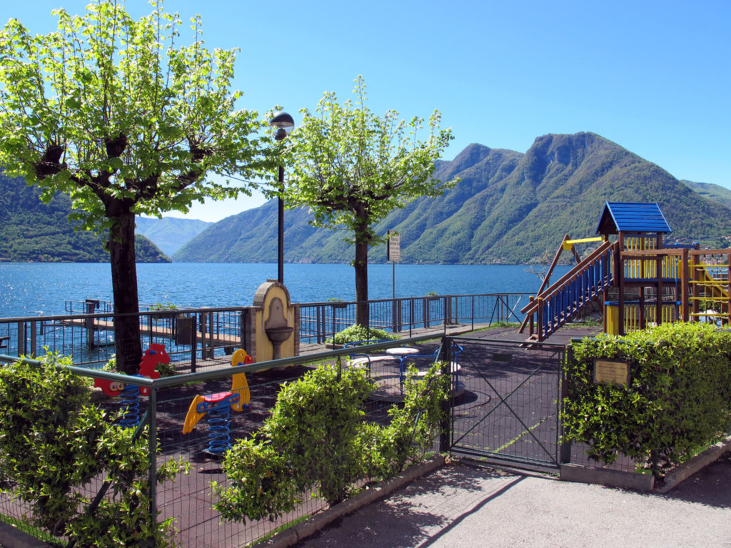 2-Zimmer-Wohnung 60 m2. Zweckmässig eingerichtet: Wohn-/Esszimmer mit 1 Doppeldiwanbett und Sat-TV. Ausgang zum Balkon. 1 Doppelzimmer. Kochnische (4 Kochplatten, Backofen, Mikrowelle, Tiefkühler). Dusche/Bidet/WC. G-Heizung (extra). Heizung nur verfügbar von 15.10. bis 15.04. Balkon. Balkonmöbel. Panoramasicht auf den See und die Berge. Zur Verfügung: Babybett bis 3 Jahre. Internet (Wireless LAN, gratis). Geeignet für Familien. CIR: 013252-CIM-00005