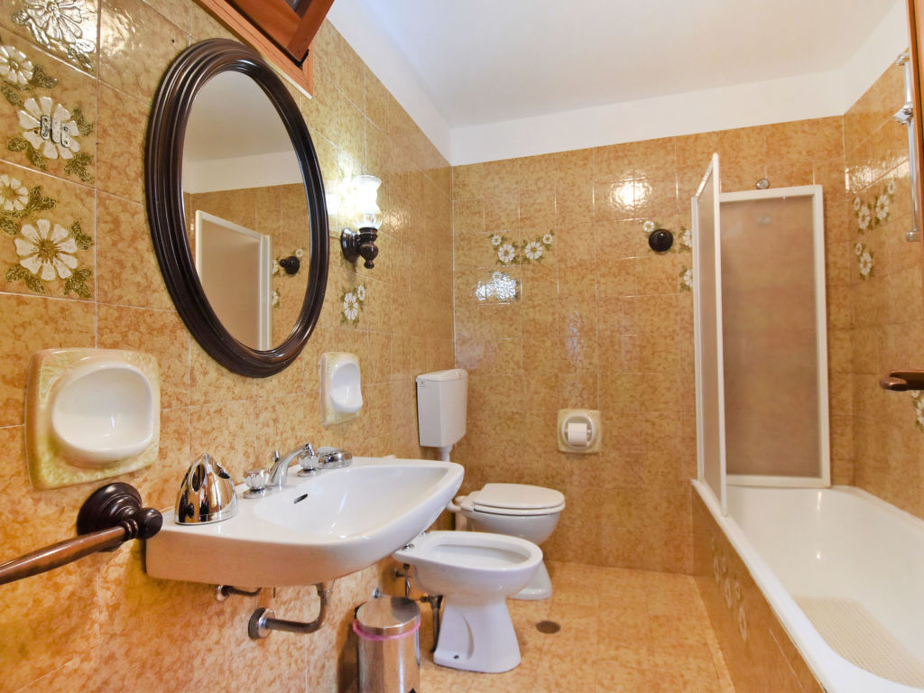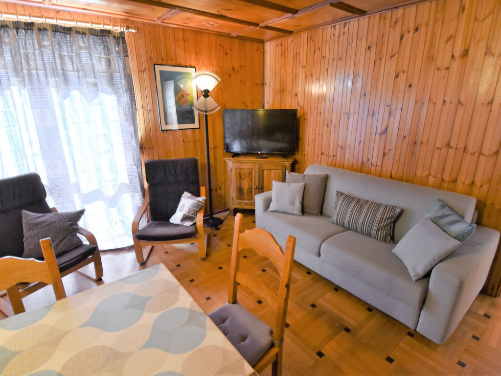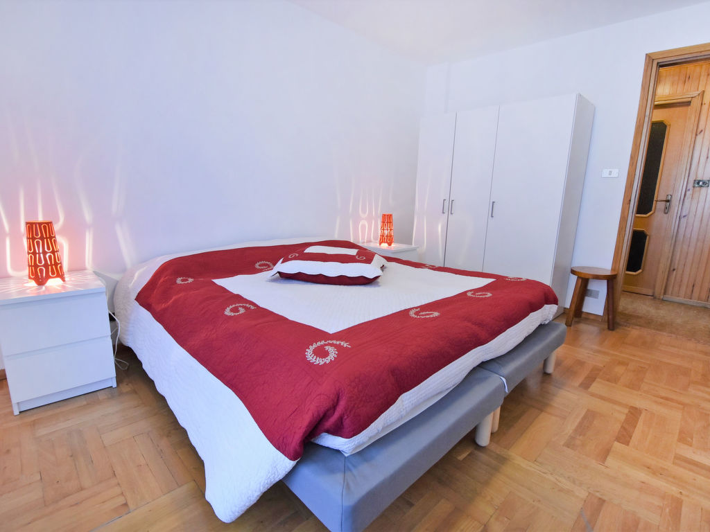 4-Zimmer-Wohnung 90 m2 im 2. Stock. Zweckmässig und komfortabel eingerichtet: Wohn-/Esszimmer mit offenem Kamin (nur Deko), Esstisch und TV (Flachbildschirm). Ausgang zum Balkon. 1 Doppelzimmer. Ausgang zum Balkon. 1 Zimmer mit 2 Betten. Ausgang zum Balkon. 1 Zimmer mit 1 x 2 Etagenbetten. Grosse Küche (Backofen, Geschirrspüler, 4 Induktionskochplatten, Wasserkocher, Mikrowelle, Tiefkühler) mit Esstisch. Ausgang zum Balkon. Bad/Dusche/Bidet/WC. Heizung. Heizung nur verfügbar von 01.10. bis 30.05. Parkettböden. Liegestühle. Sicht auf die Berge. Zur Verfügung: Waschmaschine, Bügeleisen, Haartrockner. Internet (Wireless LAN, gratis). Bitte beachten: geeignet für Familien. Nichtraucher-Unterkunft. 1 Haustier/Hund erlaubt. Kein Fahrstuhl.
