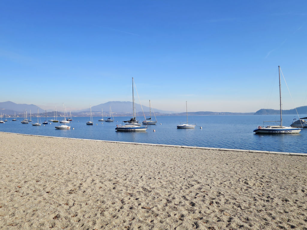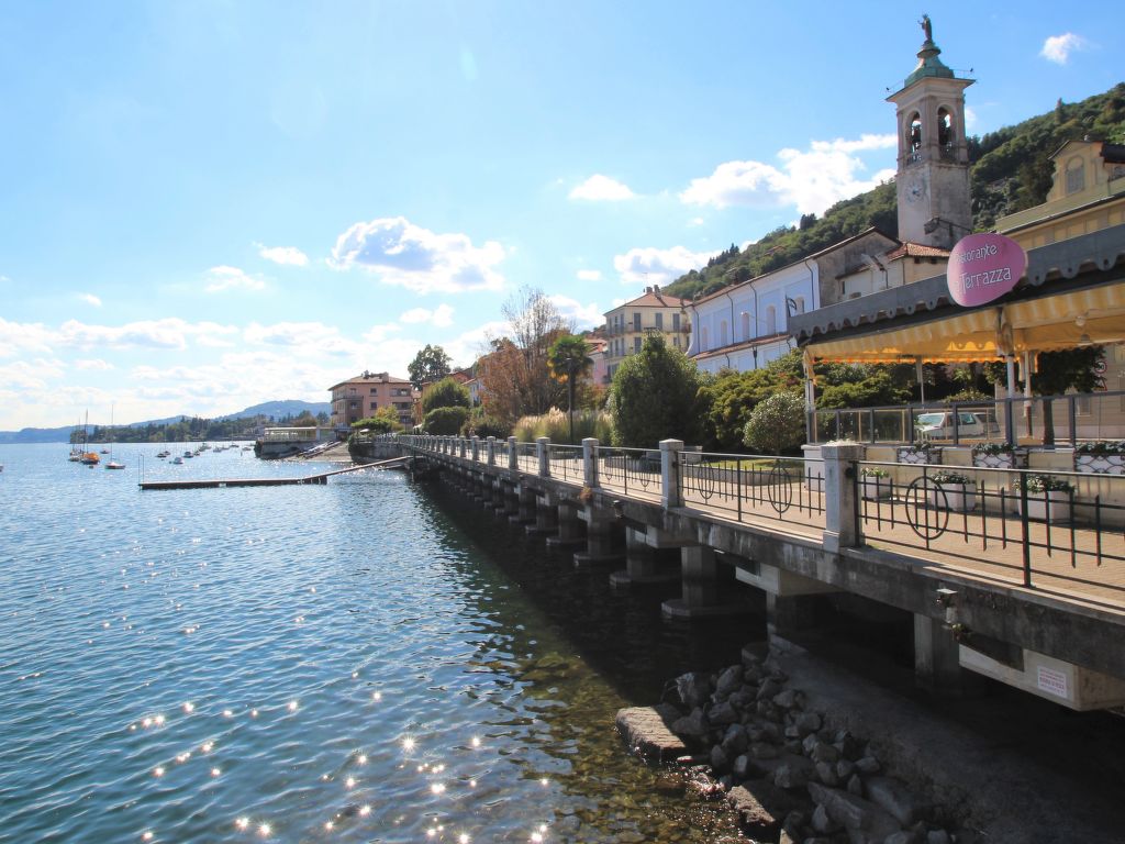 Mehrfamilienhaus. 6 Wohnungen im Ferienhaus. Belgirate, 6.5 km vom Zentrum von Stresa, 11 km vom Zentrum von Arona, am Hang, 100 m vom See, 400 m vom Strand. Zur Alleinbenutzung: gepflegter Garten 300 m2 (eingezäunt) mit Rasen und Pflanzen. 250 m lange schmale Zufahrt bis zum Haus. 100 m Fussweg bis zum Haus. Breite der Zufahrtsstrasse: 180 cm. Öffentliche Parkplätze 100 m. Lebensmittelgeschäft 200 m, Restaurant 300 m, Bahnstation "Belgirate" 600 m, Grasstrand 400 m. Bitte beachten: Be- und Entladen am Ferienhaus möglich. Eisenbahnlinie 80 m vom Haus.