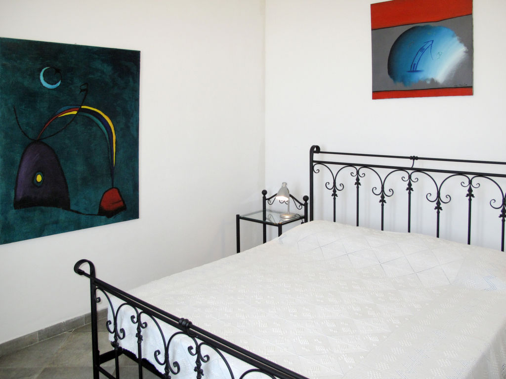 3-Zimmer-Wohnung 'Silvia', Erdgeschoss, ca. 60 m². Separater Zugang über 3 Stufen. Wohn-/Schlafraum mit Doppelbettcouch, Sitzcouch, Essplatz und Küchenzeile (4 Flammen, Backofen, Kühl-/Gefrierkombination, Kaffeemaschine, Wasserkocher, Toaster), Ausgang ins Freie. Schlafzimmer mit franz. Bett (1,60 m breit). Kleines Zweibettzimmer (Betten 0,80 m breit). Dusche/Bidet/WC. CITR: 008031-AGR-0015