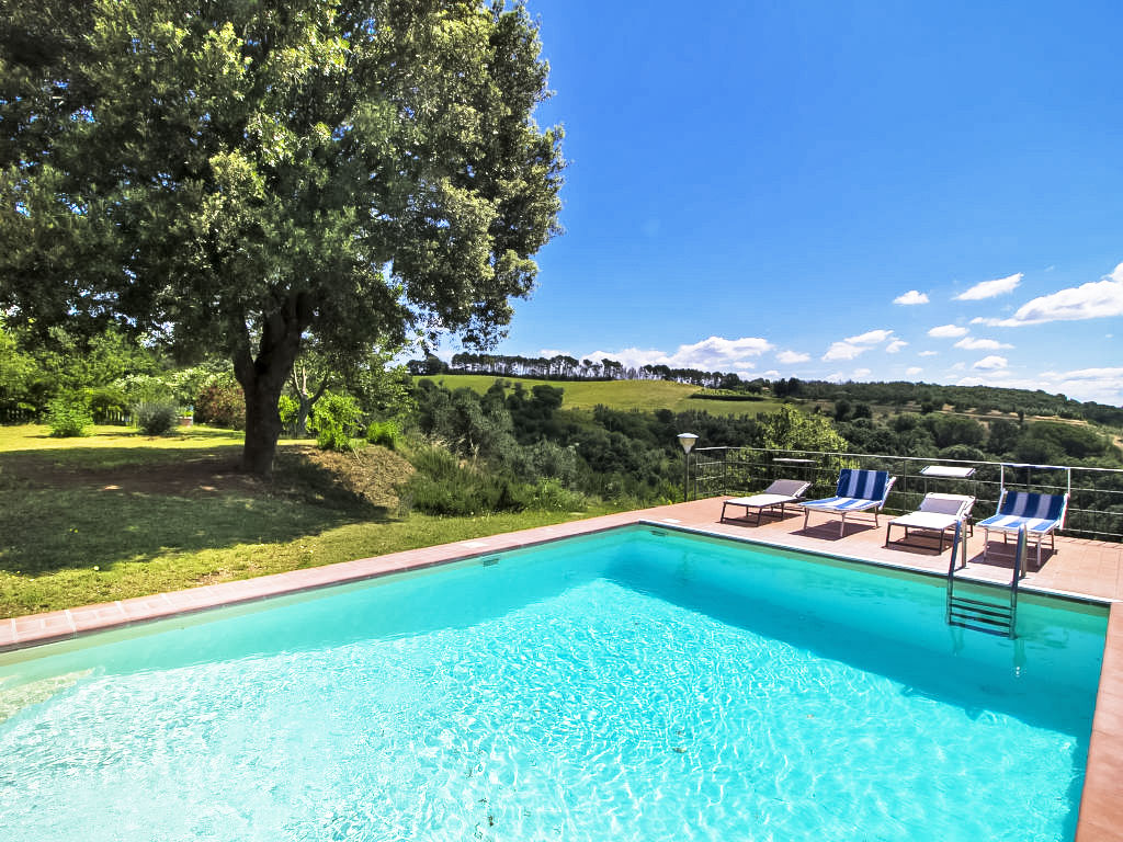 In einer wunderschönen Hanglage, wo Sie den Blick auf das Meer und die umliegenden Hügel bewundern können, finden Sie dieses typisch toskanische Anwesen, bestehend aus einem Bauernhaus, einer Säulenhalle und einem grossen Schwimmbad und einem grossen, in Wälder, Wiesen und Olivenhaine unterteilten, Grundstück. Schöner, alleinstehender Landsitz "Podere le Valli". 6 km vom Zentrum von Riparbella, 10 km vom Zentrum von Cecina, alleinstehende Lage auf einem Hügel, 10 km vom Meer, im Grünen. Zur Alleinbenutzung: Grundstück 3'000 m2 (eingezäunt), wunderschöner Garten zum Entspannen, Schwimmbad (5 x 8 m, 50 - 200 cm tief, 29.05.-12.10.). Im Hause: Internetzugang, Waschmaschine. Zufahrt (1.3 km Naturweg). Parkplatz beim Haus. Lebensmittelgeschäft 5 km, Supermarkt 8 km, Restaurant 3 km, Bahnstation 9 km, Sandstrand 10 km. Jacht-Hafen 10 km, Tennis 5 km, Reitstall 3 km. Nahe gelegene Sehenswürdigkeiten: Bolgheri 20 km, Volterra 30 km. Bitte beachten: Fahrzeug empfohlen. Der Besitzer wohnt auf dem gleichen Grundstück. Eigentümer hat einen Hund. Im oberen Teil des Hauses befindet sich eine kleine Wohnung, die gelegentlich vom Besitzer benutzt wird. Separate Aussentreppe auf der Rückseite des Hauses.