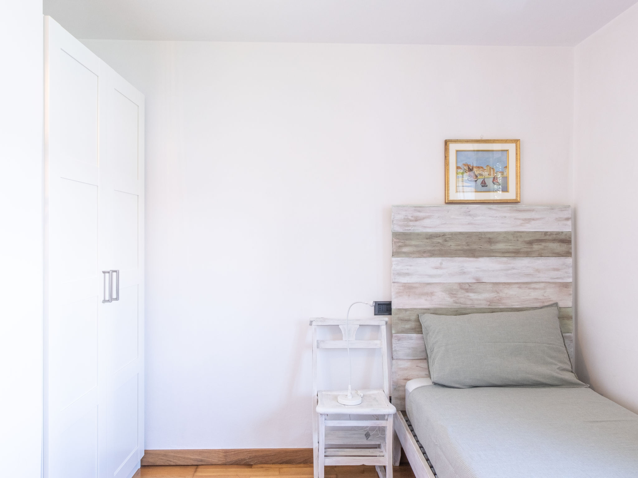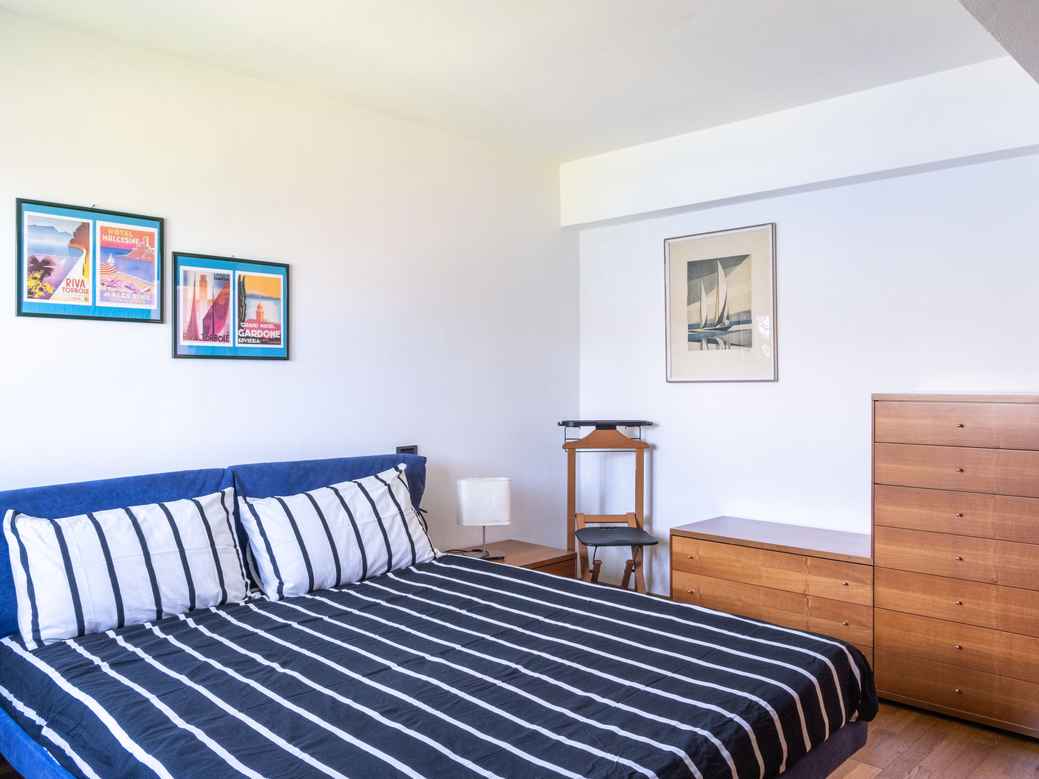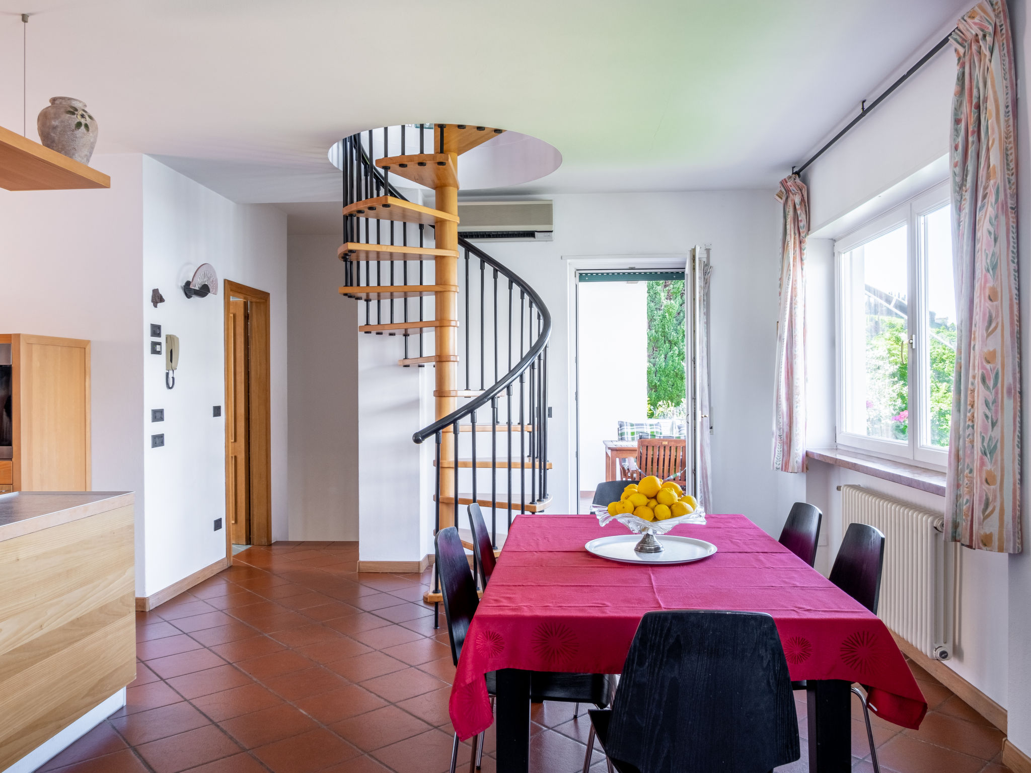 5-Zimmer-Doppelhaushälfte 110 m2 auf 3 Stockwerken. Geräumig und hell, schön eingerichtet: grosses Wohn-/Esszimmer mit Esstisch, Sat-TV und Klimaanlage. Ausgang zum Balkon. Offene Küche (Backofen, Geschirrspüler, 4 Flammen, Toaster, Tiefkühler). Dusche/Bidet/WC. Unteres Geschoss: Eingang. Ausgang zum Garten. 1 Doppelzimmer. 2 Zimmer, jedes Zimmer mit 1 Bett. Dusche/Bidet/WC. Obergeschoss: (Wendeltreppe) 1 abgeschrägtes, offenes grosses Doppelzimmer, Deckenhöhe 100 - 210 cm mit Panoramafenster. Ausgang zum Balkon. Herrliche Sicht auf den See. Zur Verfügung: Waschmaschine, Bügeleisen. Internet (Wireless LAN, gratis). Bitte beachten: Nichtraucher-Unterkunft. Maximal 1 Haustier/Hund erlaubt. Eigener Eingang. M0230450232