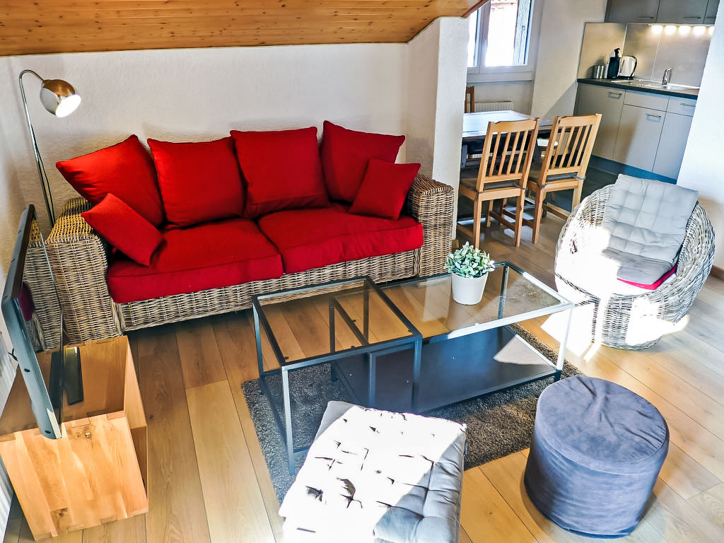 "Les Bruyères 25", 2-Zimmer-Attikawohnung 42 m2 im 2. Stock. Komfortabel und schön eingerichtet: Wohn-/Esszimmer mit TV (Flachbildschirm), DVD. Ausgang zum Balkon, Richtung Süden. 1 Zimmer mit 1 x 2 Etagenbetten, 1 Doppelbett (160 cm). Offene Küche (Backofen, Geschirrspüler, 4 Glaskeramikherd Platten, Mikrowelle, elektrische Kaffeemaschine, Kapseln für die Kaffeemaschine (Dolce Gusto) extra). Bad/WC. Kleiner Balkon 6 m2. Balkonmöbel. Sehr schöne Sicht auf die Berge. Zur Verfügung: Internet (Wireless LAN, gratis). IPod docking station. Garage Nr. 25.