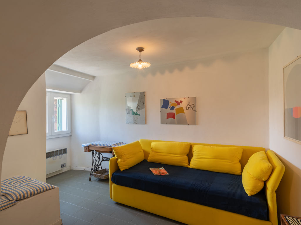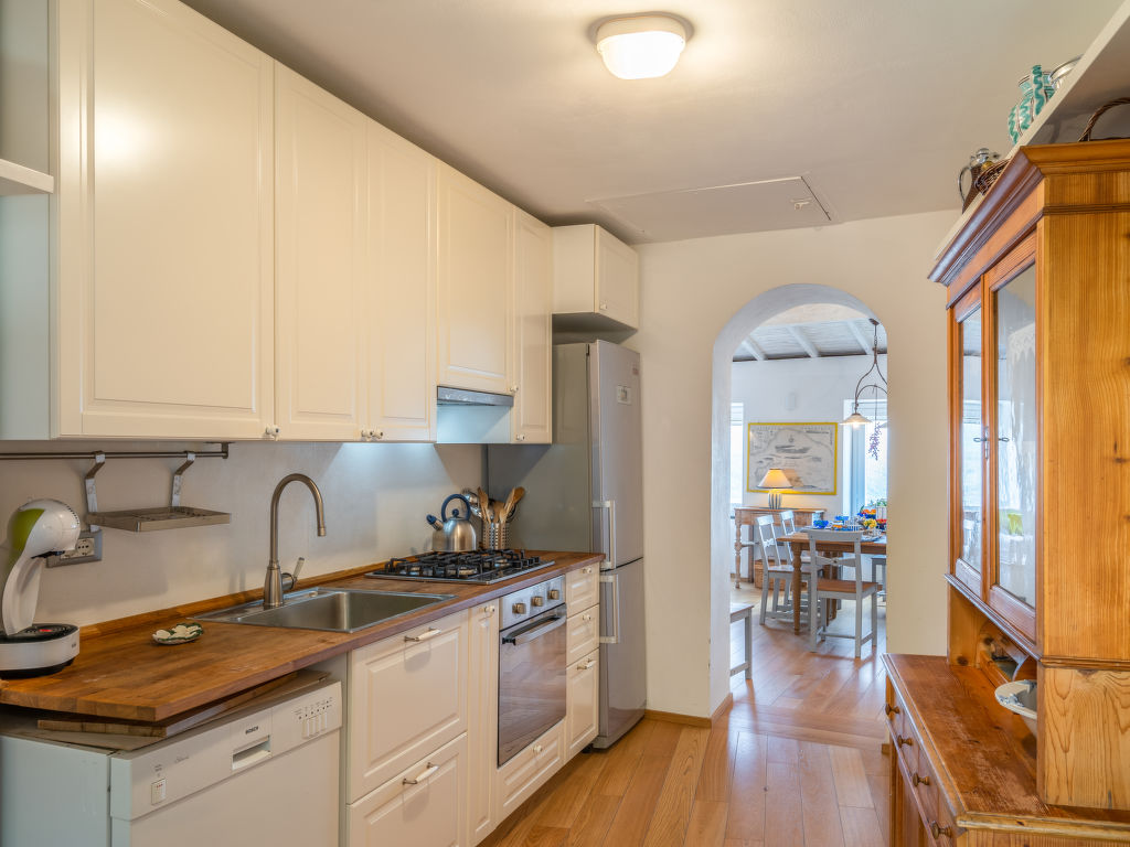 5-Zimmer-Haus, 3 Etagen (Hanglage), ca. 110 m². Separater ebenerdiger Eingang in die 1. Etage: Schlafzimmer mit franz. Bett (1,60 m breit). Schlafzimmer mit franz. Bett. Kinderzimmer mit Etagenbett (0,80 m breit). Dusche/WC. Wendeltreppe in die 2. Etage: Wohnraum mit Sitzgruppe und Essplatz, durch offenen Rundbogen in die Küche (4 Flammen, Backofen, Geschirrspüler, Kühl-/Gefrierkombination, Kaffeemaschine) mit Ausgang ins Freie. Vom Flur in der 1. Etage Wendeltreppe ins Erdgeschoss: Schlafzimmer mit Bettcouch (0,80 m breit), Dusche/Bidet/WC. Hinweis: Eine kleine, völlig separate Wohnung in der 2. Etage wird regelmäßig zu Ferienzwecken genutzt. CITRA: 008030-LT-0131