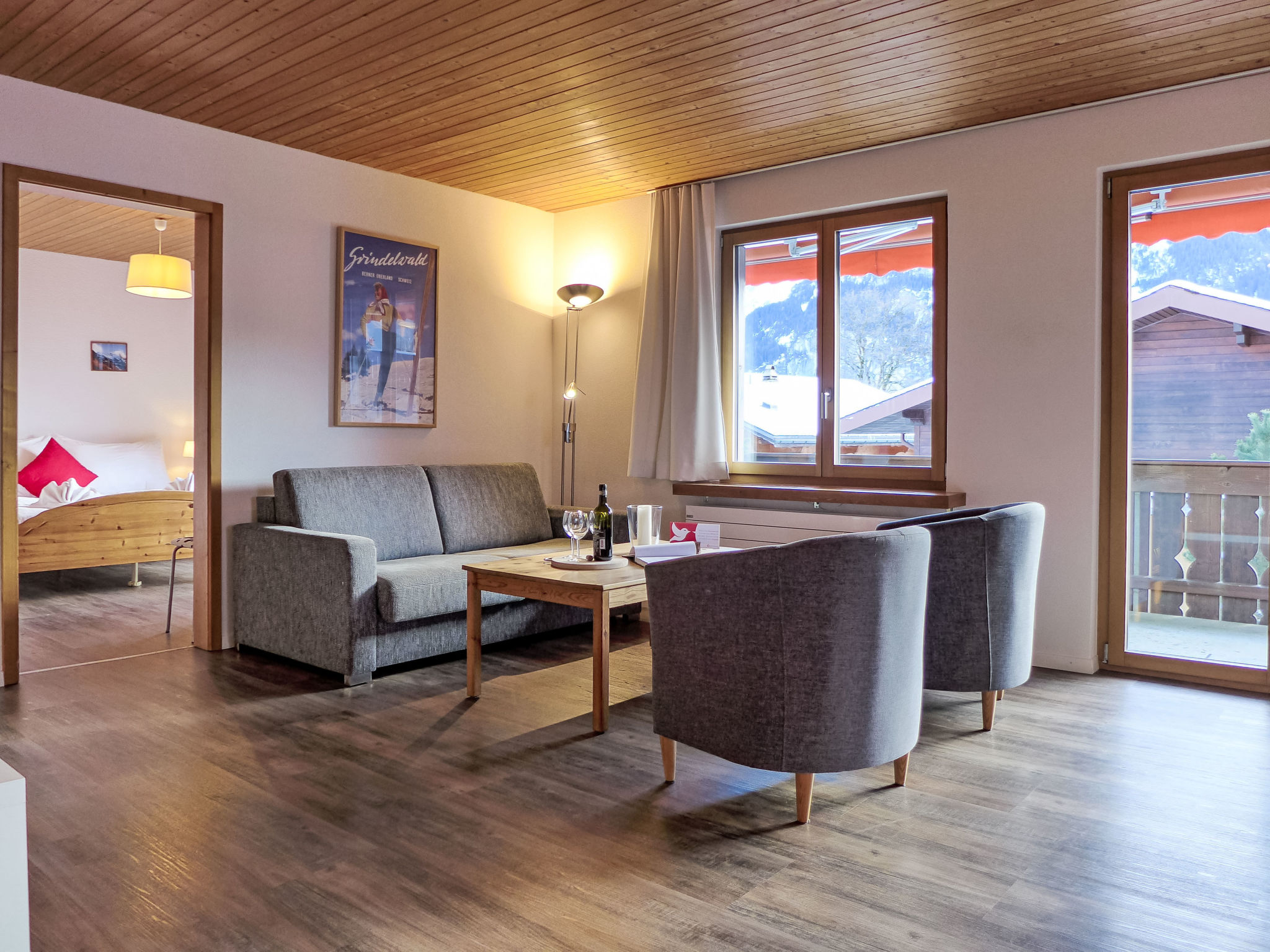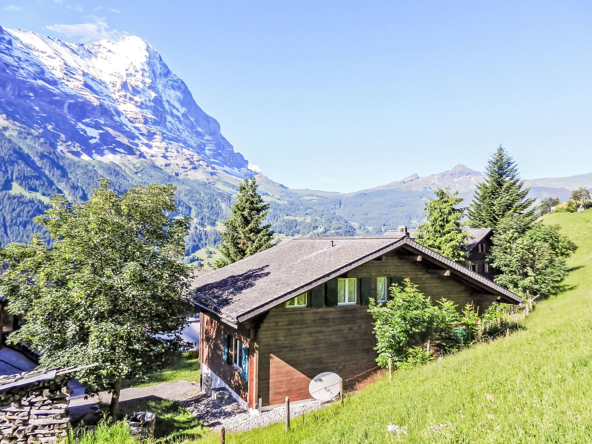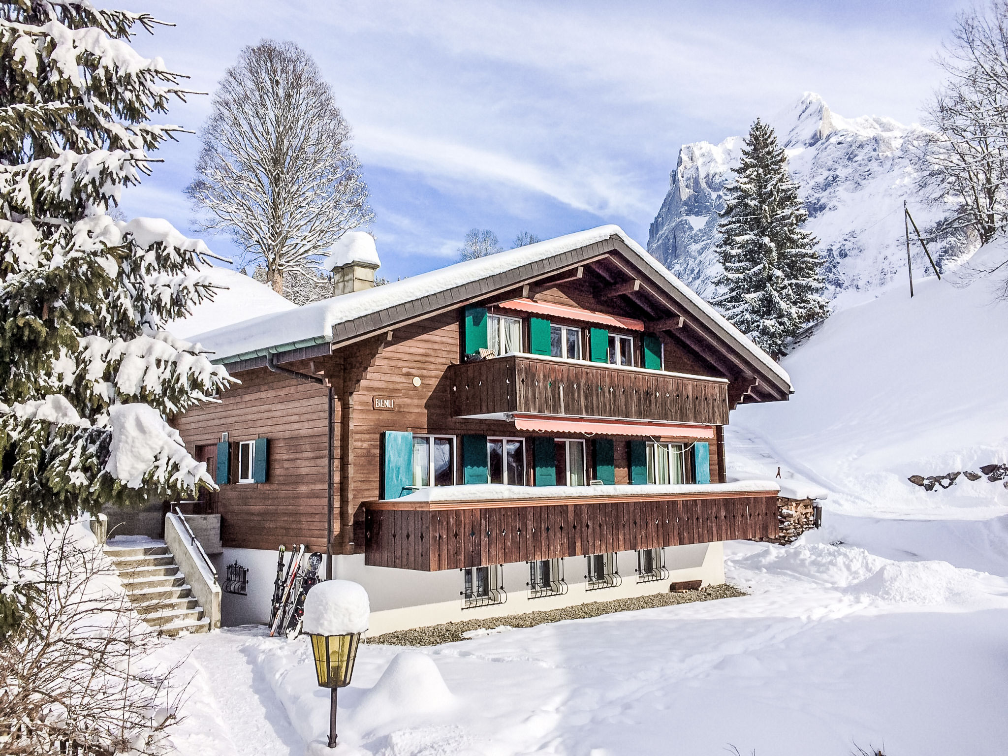 Gemütliches Zweifamilienhaus "Chalet Bienli". Im Ortsteil Terrassenweg, 2.5 km vom Zentrum, ruhige, sonnige Lage, 150 m vom Skigebiet, Richtung Süden. Im Hause: Skiraum, Waschmaschine, Wäschetrockner (zur Mitbenutzung). Abstellraum vorhanden. Im Winter bitte Schneeketten mitbringen. Treppenweg bis zum Haus. Parkplatz in 50 m. Einkaufszentrum 2.5 km, Restaurant 150 m, Bäckerei 2.5 km, Fahrradverleih 2.5 km, Zentrum zu Fuss in 10 Minuten erreichbar, Bushaltestelle "(gratis) Bodmi" 150 m, Bahnstation "Grindelwald Dorf" 2.9 km, Freibad 4 km, Hallenbad 2.8 km. Golfplatz (9 Loch) 3.5 km, Tennis 3 km, Minigolf 2.5 km, Sportzentrum 2.8 km, Skilift 150 m, Gondelbahn 2.6 km, Skipisten, Skiverleih, Skibushaltestelle, Skischule, Kinderskischule 150 m, Langlaufloipe 3 km, Eisfeld 2.8 km, Kinderspielplatz 2.8 km. Bekannte Skigebiete sind gut erreichbar: First 150 m, kl. Scheidegg/Männlichen 4 km. Bekannte Seen in der Umgebung sind gut erreichbar: Thuner-/Brienzersee 20 km. Bitte beachten: Gratis Skibus. Der gratis Skibus fährt zum Skigebiet kl. Scheidegg/Männlichen und First.