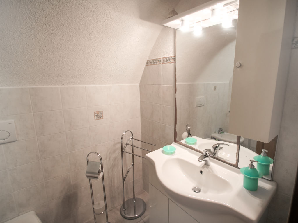 "Adele", 2-Zimmer-Wohnung 55 m2 auf 3 Stockwerken, Südlage. Zweckmässig und gemütlich eingerichtet: sep. WC. Obergeschoss: Wohn-/Esszimmer mit 1 Doppeldiwanbett, offenem Kamin, Esstisch und Sat-TV. Kochnische (Backofen, 4 Flammen, Toaster, Wasserkocher, Mikrowelle, elektrische Kaffeemaschine). 2. Obergeschoss: 1 Doppelzimmer mit Dusche/Bidet/WC. Ausgang zum Balkon. G-Heizung (extra). Kleiner Balkon, kleiner Garten. Terrassenmöbel, Liegestühle (2). Eingeschränkte Sicht auf den See. Zur Verfügung: Waschmaschine, Bügeleisen, Kinderhochstuhl, Babybett. Parkplatz. Bitte beachten: Nichtraucher-Unterkunft. Eigener Eingang. CIR:013083- CNI 00006