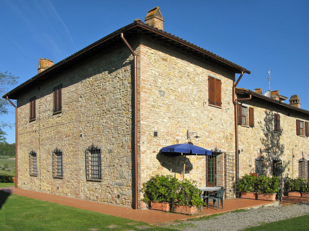 Schön, gemütlich auf Weingut Landsitz "Podere di Mezzo", umgeben von Bäumen, Feldern und Weinbergen. 8 Wohnungen in der Residenz. 7 km vom Zentrum von San Gimignano, 4 km vom Zentrum von Certaldo, 45 km vom Zentrum von Siena, alleinstehende, sonnige, erhöhte Lage, 85 km vom Meer, im Grünen. Zur Mitbenutzung: Grundstück, Garten 1 ha mit Pflanzen und Bäumen, Wiese, Schwimmbad eingezäunt (14 x 7 m, 120 - 220 cm tief, saisonale Verfügbarkeit: 01.Mai.-15.Okt. Öffnungszeiten Schwimmbad: 09:00-20:00). Aussendusche, Terrasse, Gartenmöbel, Grill, Poolpflege durch den Besitzer/Gärtner. In der Anlage: Empfang, Waschmaschine (zur Mitbenutzung, extra). Haushaltshilfe täglich möglich (extra). Frühstück möglich auf Anfrage (extra). Zufahrt (600 m Naturweg). Parkplatz (überdacht) auf dem Grundstück. Einkaufsgeschäft 3 km, Lebensmittelgeschäft 3 km, Supermarkt 4 km, Restaurant 4 km, Bäckerei 3 km, Fahrradverleih 4 km, Bushaltestelle 300 m, Bahnstation "Certaldo" 4 km, Hallenbad 4 km. Tennis 4 km, Wanderwege ab Haus 100 m. Nahe gelegene Sehenswürdigkeiten: Volterra 30 m, Pisa 65 m, Firenze 65 m, Montalcino 80 m. Bitte beachten: geeignet für Familien, Babyausstattung (inkl.). Auf dem Grundstück Tierhaltung. Ab Hof Verkauf von bäuerlichen Produkten. Der Besitzer wohnt im selben Haus. Eigentümer hat einen Hund. Alle Häuser/Wohnungen sind individuell eingerichtet.