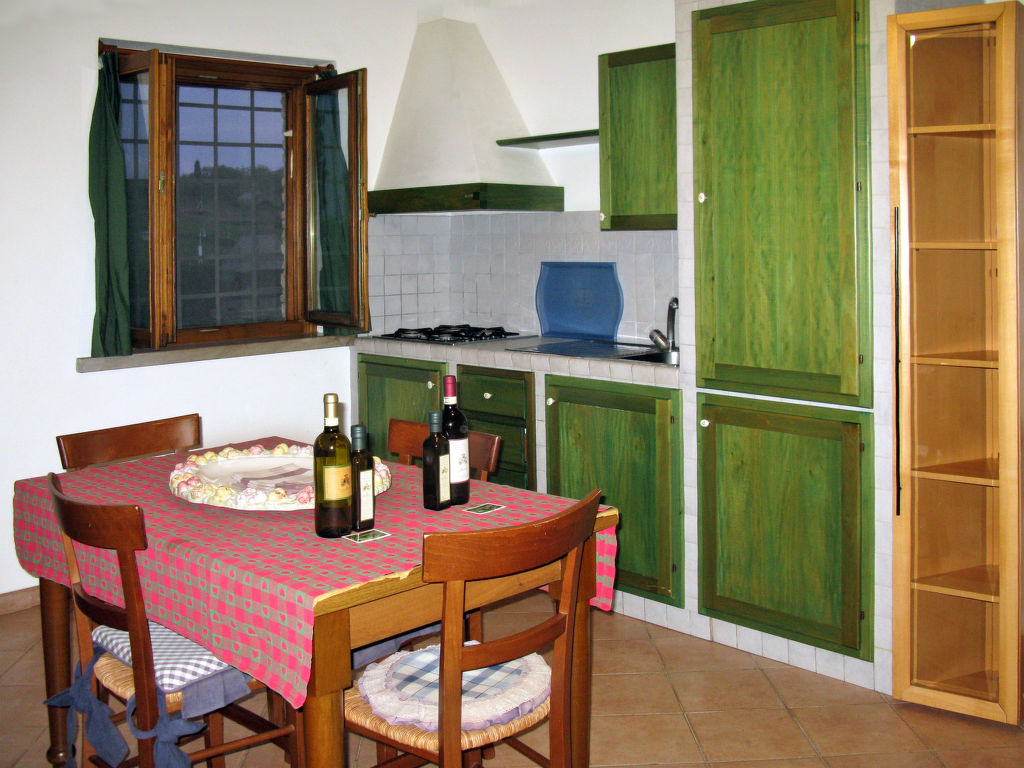 "Podere di Mezzo - Cantina", 3-Zimmer-Wohnung 54 m2, im Erdgeschoss. Hell, zweckmässig und rustikal eingerichtet: Wohn-/Esszimmer mit Esstisch und Sat-TV. Ausgang zur Terrasse. 1 Doppelzimmer. 1 Zimmer mit 2 Betten (80 cm). Kochnische (4 Flammen, Toaster, elektrische Kaffeemaschine). Dusche/Bidet/WC. G-Heizung. Terrasse. Terrassenmöbel. Schöne Sicht auf die Landschaft. Zur Verfügung: Kinderhochstuhl, Babybett. Internet (Wireless LAN, gratis). Bitte beachten: Nichtraucher-Unterkunft. Maximal 1 Haustier/Hund erlaubt. Eigener Eingang.