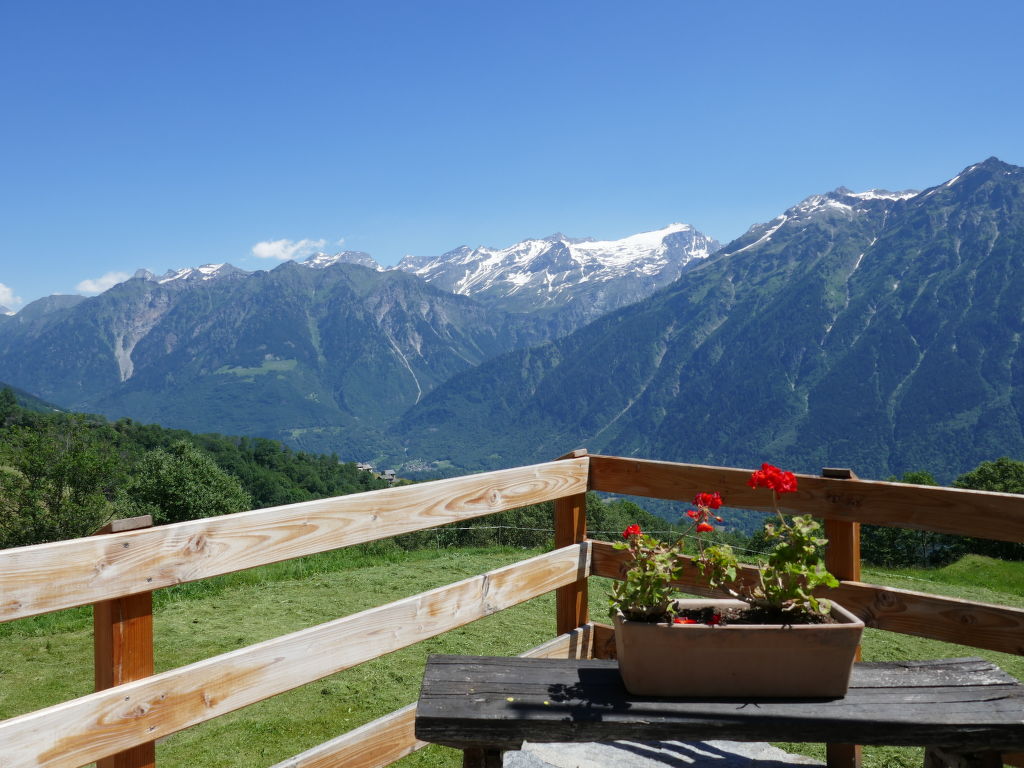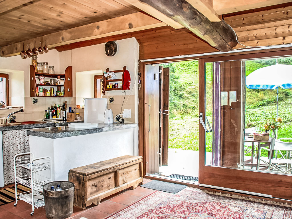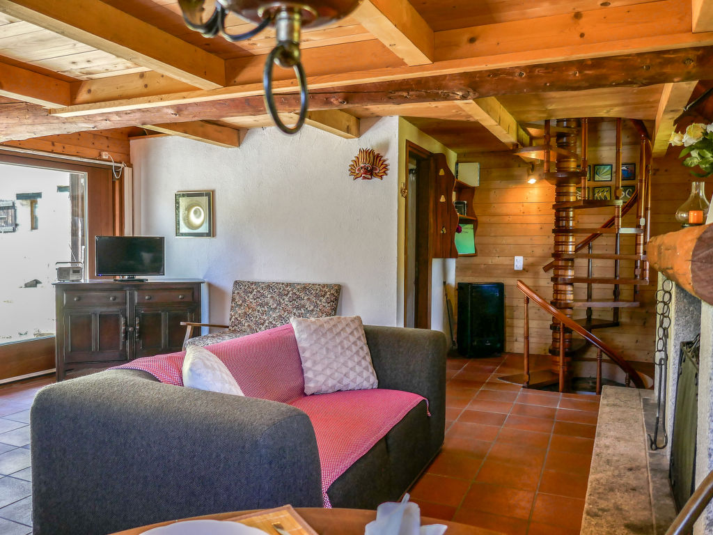 "Rustico Katono", 3-Zimmer-Haus 100 m2 auf 3 Stockwerken. Teilweise abgeschrägt, einfach und gemütlich eingerichtet: offenes Wohn-/Esszimmer mit offenem Kamin, Sat-TV, Flachbildschirm, Radio und G-Heizofen. Ausgang zur Terrasse. Offene Küche (4 Kochplatten, Backofen, Mikrowelle, elektrische Kaffeemaschine). Dusche/WC. E-Heizung. Unteres Geschoss: 1 Doppelzimmer mit 1 Doppelbett (2 x 90 cm, Länge 200 cm). Dusche/WC. E-Heizung. Obergeschoss: (Wendeltreppe) abgeschrägte, offene Galerie mit 3 Betten (90 cm, Länge 200 cm). Terrasse, grosser Gartensitzplatz. Terrassenmöbel, Gartengrill (mobil), Liegestühle (2). Herrliche Panoramasicht auf die Berge und die Landschaft. Zur Verfügung: Kinderhochstuhl, Babybett bis 3 Jahre (extra), Haartrockner, Holz (extra). Internet (Wireless LAN, extra). Bitte beachten: Nichtraucher-Haus. 2 Haustiere/Hunde erlaubt. Feuerlöscher.