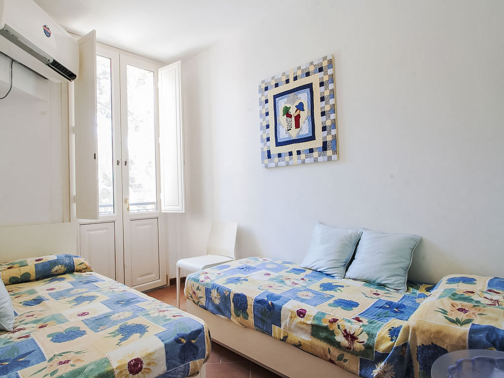 3-Zimmer-Wohnung 60 m2 auf 2 Stockwerken. Renoviert, schön und geschmackvoll eingerichtet: Wohn-/Esszimmer mit 1 Doppeldiwanbett und TV. Ausgang zum Garten, zur Terrasse. Kochnische (Backofen, Geschirrspüler, 4 Induktionskochplatten) mit Esstisch. Sep. WC. Obergeschoss: 1 Doppelzimmer mit Panoramafenster. 1 kleines Zimmer mit Panoramafenster mit 2 Betten. Dusche/Bidet/WC. Klimaanlage. Gartensitzplatz 40 m2, Garten. Terrassenmöbel, Liegestühle (2), Sitzplatz. Schöne Sicht auf das Meer. Zur Verfügung: Waschmaschine, Haartrockner. Parkplatz.