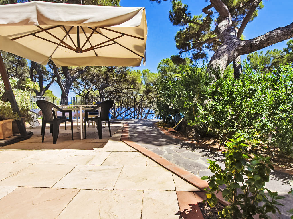 Das Gebiet Capo D'Arco (mit überwachtem Privatzugang) liegt mitten in einer Oase von Naturschönheiten. Schöne Ferienanlage "Capo d'Arco", umgeben von Bäumen. Im Ort Capo d'Arco, ruhige Lage, 100 m vom Meer, 500 m vom Strand, direkter Zugang zum Strand. Zur Mitbenutzung: Terrassengarten, Naturgarten, 2 Schwimmbäder (saisonale Verfügbarkeit: 01.Jun.-30.Sep.). Dusche/WC im Poolbereich, Kinderbecken, Aussendusche, Privatstrand, Tennis (extra), Beachvolleyball, Gartenmöbel. In der Anlage: Restaurant, Bar, Tischtennis, Kiosk, Sonnenterrasse. Getränkeservice. Zufahrt (500 m Naturweg). Parkplatz. Lebensmittelgeschäft 100 m, Supermarkt 5 km, Restaurant, Bar 100 m, Fähre "Rio Marina" 13 km, Sandstrand "Brigantino" 500 m (klein). Nahe gelegene Sehenswürdigkeiten: Porto Azzurro 5 km. Bitte beachten: Fahrzeug empfohlen. Bewachte Residenz. In diesem Haus sind weitere Ferienwohnungen mietbar. Gäste dürfen das Schwimmbecken (mit Meer- und Frischwasser) kostenlos benutzen, nur die Sonnenliegen sind extra bezahlbar. Bar, Restaurants, Supermarkt sind vorhanden (15.05/30.09). Die WIFI-Verbindung ist nur im Poolbereich gewährleistet. Öffnungszeiten und Zeiten der Pools und Restaurants können variieren, wenn die Nachfrage nicht ausreicht oder bei ungünstigen Wetterbedingungen ist.