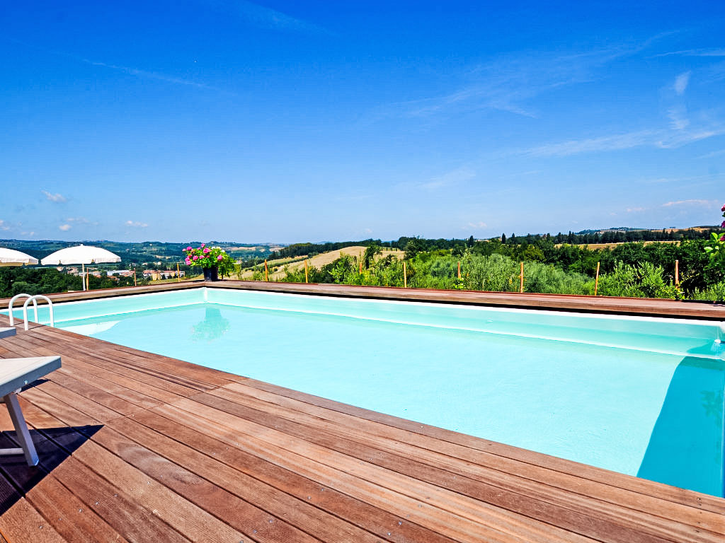 Schönes Bauerngut "Podere La Torre", renoviert, umgeben von Wiesen, Feldern und Weinbergen. Am Ortsrand Certaldo Alto, alleinstehende, sonnige Lage auf einem Hügel, im Grünen. Zur Mitbenutzung: naturbelassenes Grundstück, Garten mit Rasen und Pflanzen, Schwimmbad (5 x 10 m, saisonale Verfügbarkeit: 24.Apr.-02.Okt.). Aussendusche, Terrasse, Gartenmöbel, Grill. In der Anlage: Internetzugang, Wireless LAN, Waschmaschine, Wäschetrockner, Heizung vor Ort zu zahlen, Fahrräder vorhanden. Wäschewechsel 1 mal wöchentlich. Parkplatz auf dem Grundstück. Einkaufsgeschäft 2 km, Supermarkt 2 km, Einkaufszentrum 1 km, Bäckerei 1 km, Zentrum zu Fuss in 20 Minuten erreichbar, Freibad 2 km. Golfplatz 30 km, Tennis 3 km, Reitstall 5 km, Kinderspielplatz 3 km. Nahe gelegene Sehenswürdigkeiten: Certaldo Alto 1 km, Firenze 45 km, Siena 45 km, San Gimignano 12 km. Ab Hof Verkauf von bäuerlichen Produkten. Bitte beachten: Der Besitzer wohnt auf dem gleichen Grundstück.