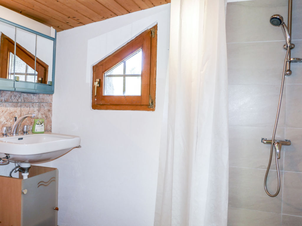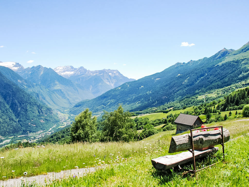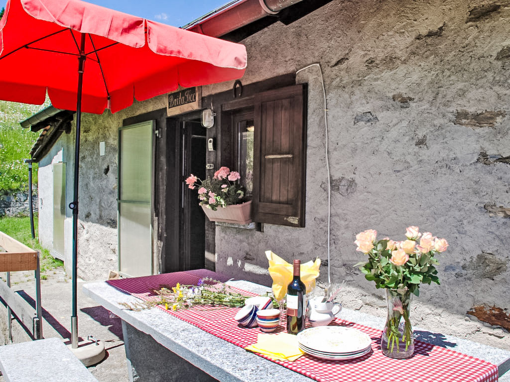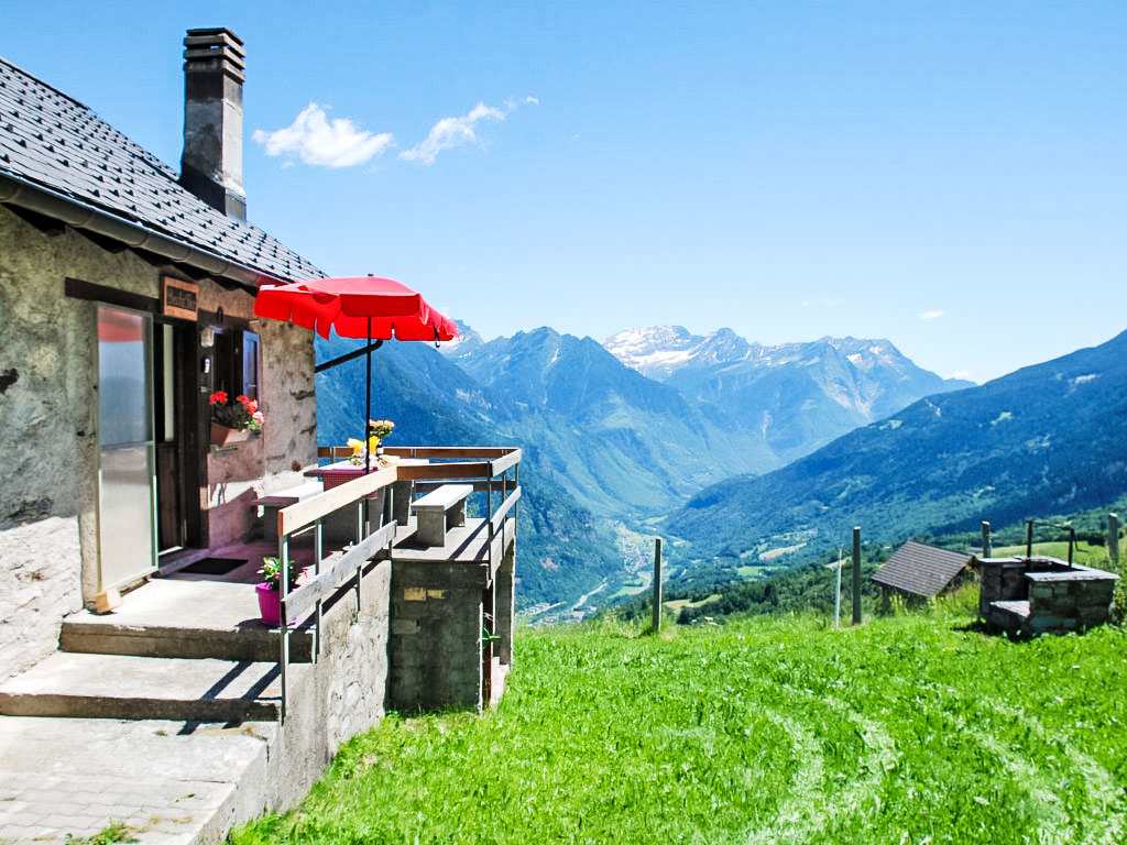 "Baita Ficc", 2-Zimmer-Haus 58 m2 auf 2 Stockwerken, Südlage. Teilweise abgeschrägt, zweckmässig und rustikal eingerichtet: offenes grosses Wohn-/Esszimmer mit offenem Kamin, Esstisch und Sat-TV (Flachbildschirm). Ausgang zum Garten, zur Terrasse. Offene Küche (4 Kochplatten). Dusche/WC. Holzheizung. Obergeschoss: (steile Treppe) 1 abgeschrägtes, offenes grosses Zimmer mit 1 Bett (90 cm, Länge 200 cm), 1 franz. Bett (1 x 160 cm, Länge 190 cm), 2 Doppelbetten (1 x 160 cm, Länge 200 cm). Terrassenmöbel. Herrliche Panoramasicht auf die Berge, das Tal und die Landschaft. Zur Verfügung: Kinderhochstuhl, Babybett bis 2 Jahre (extra). Bitte beachten: Nichtraucher-Haus. 1 Haustier/Hund erlaubt. Feuerlöscher. Die Stromversorgung erfolgt über ein Solarpanel und Generator. Herd und Warmwasserboiler wird mit Gas betrieben. Elektrogeräte über 250W können nicht betrieben werden. Wichtiger Hinweis zu beachten: Bergstraße 20 km von Malvaglia in Echtzeit 40 Minuten.
