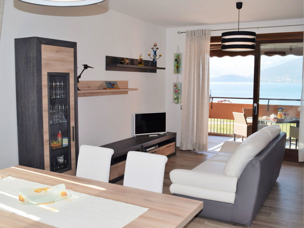 "La Perla di Laveno", 3-Zimmer-Wohnung 80 m2 im 3. Stock. Komfortabel eingerichtet: grosses Wohn-/Esszimmer mit Panoramafenster mit TV. Ausgang zur Terrasse. 1 Doppelzimmer. Ausgang zum Balkon. 1 Zimmer mit 1 Doppeldiwanbett. Ausgang zum Balkon. Kochnische (5 Kochplatten, Backofen, Geschirrspüler, Wasserkocher, Mikrowelle, Tiefkühler, elektrische Kaffeemaschine). Dusche/Bidet/WC. G-Heizung. Heizung nur verfügbar von 15.10. bis 15.04. 2 kleine Balkone, Terrasse 12 m2, überdacht. Terrassenmöbel. Sicht auf den See. Zur Verfügung: Waschmaschine. Internet (Wireless LAN, gratis). CIR: 012087-CNI-00016