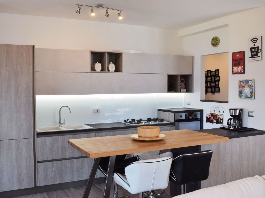 Appartementhaus. Im Ortszentrum von Laveno, 200 m vom See. Im Hause: Fahrstuhl, Zentralheizung. Zufahrt bis zum Haus. Öffentliche Parkplätze 30 m. Supermarkt 700 m, Restaurant, Bar 300 m, Bahnstation "Laveno" 500 m, Fähre "Laveno - Verbania" 500 m. Nahe gelegene Sehenswürdigkeiten: Eremo Santa Caterina del Sasso 6 km. Bitte beachten: Die Schlüsselübergabe findet bei der Agentur Holiday Rentals in Porto Valtravaglia statt, 11 km. Eisenbahnlinie 200 m vom Haus. Im August befindet sich, im Bereich vor diesem Objekt, ein Vergnügungspark (Schlafzimmer mit Blick auf die andere Seite).