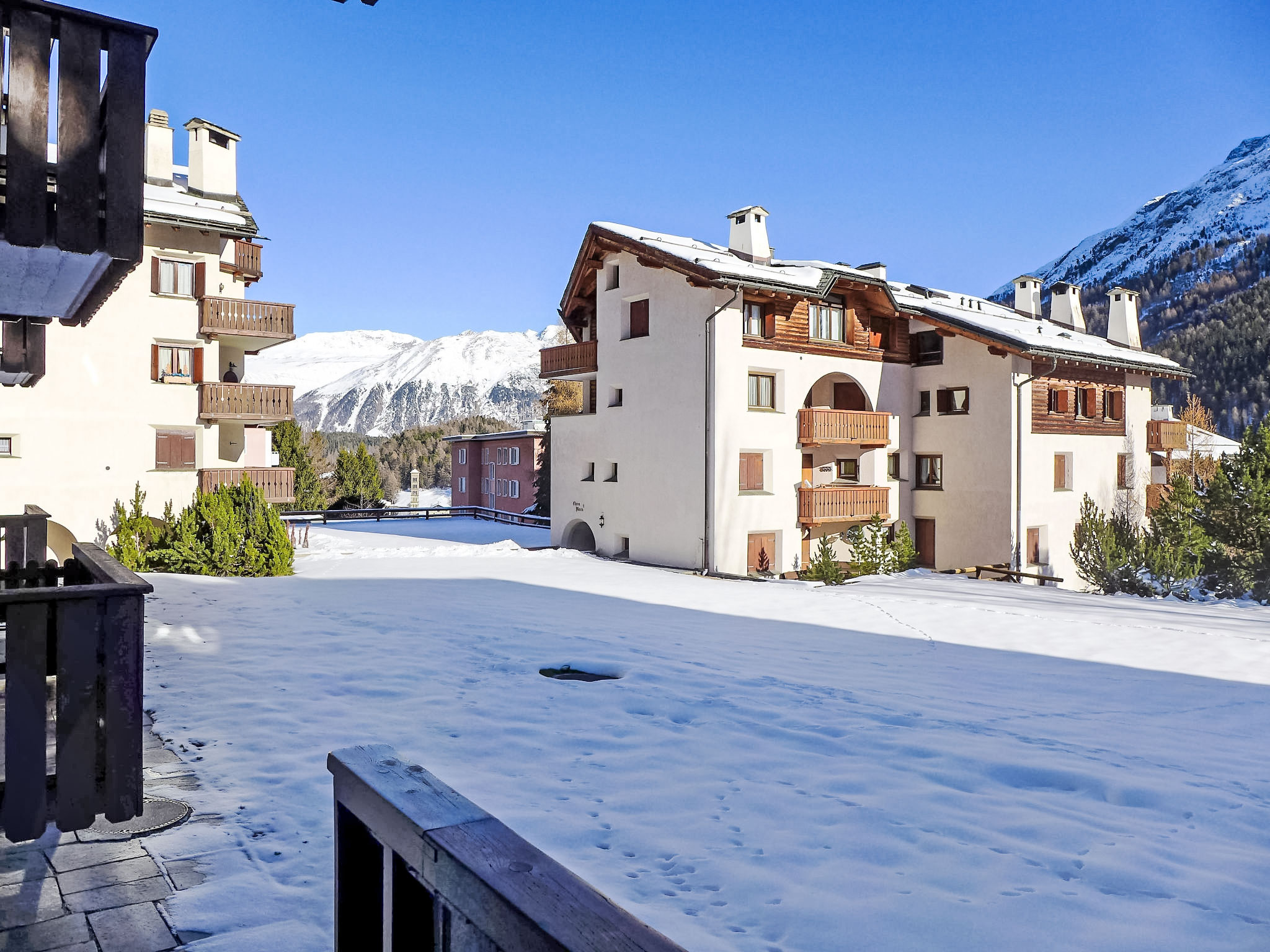 St. Moritz Bad: Komfortables Mehrfamilienhaus "Chesa Arlas", auf 4 Stockwerken, Baujahr 1965. Sonnige, erhöhte Lage in einem Wohnquartier, 800 m vom See, 1.4 km vom Skigebiet. Im Hause: Waschmaschine, Wäschetrockner (zur Mitbenutzung, extra). Im Winter bitte Schneeketten mitbringen, im Winter 4x4 empfohlen. Steiler Fussweg bis zum Haus. Einzelgarage beim Haus. Einkaufsgeschäft 450 m, Supermarkt, Restaurant, Bar 400 m, Bäckerei, Café 450 m, Fahrradverleih 550 m, Bushaltestelle "St Moritz Bad, Via Salet" 400 m, Bahnstation 2 km, Hallenbad 1 km, Thermalbad "Heilbadzentrum St. Moritz" 1.2 km, See St. Moritzer See 800 m. Golfplatz (18 Loch) 7.3 km, Surfschule 5.7 km, Tennis 1.5 km, Tennishalle 1.5 km, Minigolf 1 km, Reitstall 2.1 km, Wanderwege ab Haus 800 m, Radweg 1 km, Luftseilbahn 1.4 km, Skilift 1.4 km, Skipisten 1.4 km, Skiverleih 800 m, Skibushaltestelle 400 m, Skischule 1.6 km, Kinderskischule 1.6 km, Schlittelbahn 5.6 km, Langlaufloipe 1 km, Eisfeld 750 m, Kinderspielplatz 1.2 km. Nahe gelegene Sehenswürdigkeiten: Segantini Museum 1.7 km, Engadiner Museum 800 m, Mili Weber-Haus 2.9 km, Olympia Bob Run mit Museum 2.2 km, Nietzsche Museum in Sils-Maria 10 km. Bekannte Skigebiete sind gut erreichbar: Corviglia Piz Nair 1.4 km, Corvatsch - Furtschellas 7 km, Diavolezza - Lagalb 19.7 km. Bekannte Seen in der Umgebung sind gut erreichbar: St. Moritzer See 800 m, Silvaplaner See 5.7 km, Silser See 10 km. Wandergebiete: Stazerwald & Stazersee, Corviglia Piz Nair, Muottas Muragl. Die Schlüsselübergabe findet bei der Agentur Interhome in St. Moritz Bad statt.